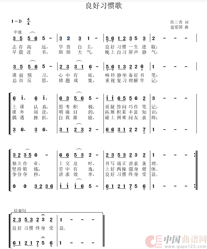 为了让学生自觉养成良好学习习惯,我校肖三杏校长写下良好习惯诗歌,并倡导同学们背诵,看同学们读得困难,如是想到是不是能把它写成一首校园歌谣,同学们是不是更能爱听爱唱,更能牢牢的记在心里呢?又能给学生创造一个舒适的学习环境和气氛,如是写下了这首《良好习惯歌》,希望大家喜欢。