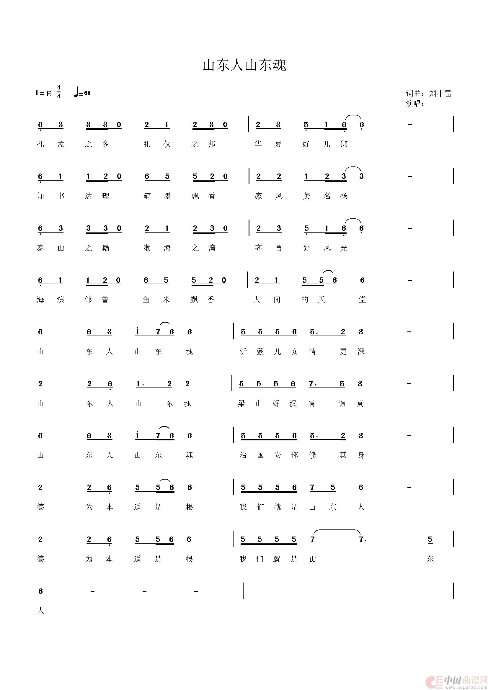 关于《山东人山东魂》曲谱的评论