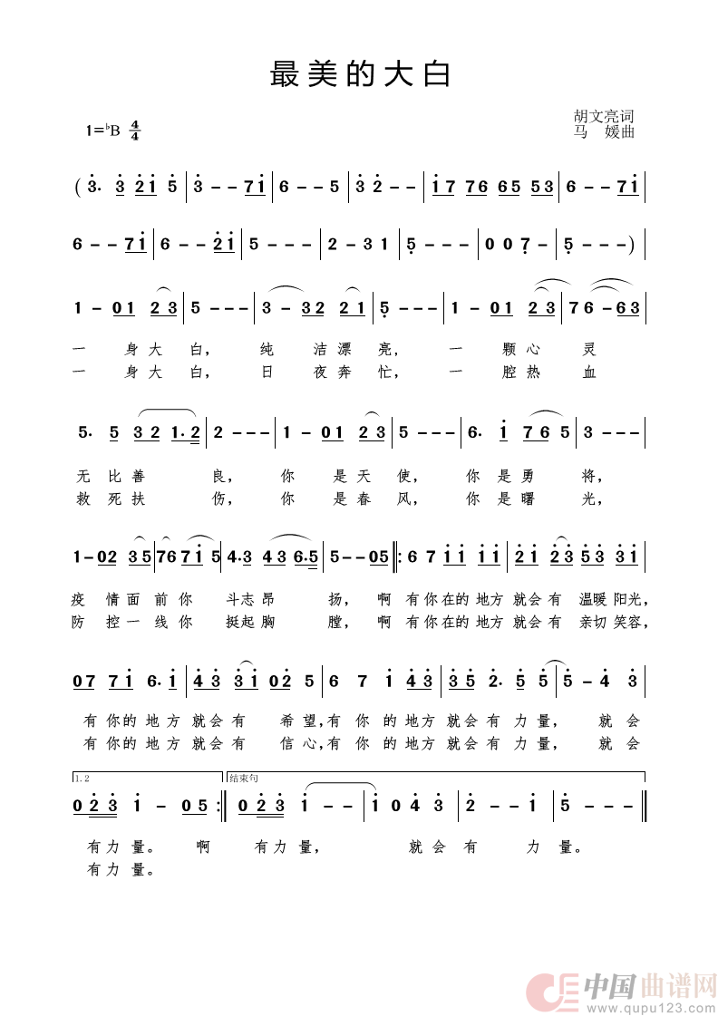 关于《最美的大白》曲谱的评论