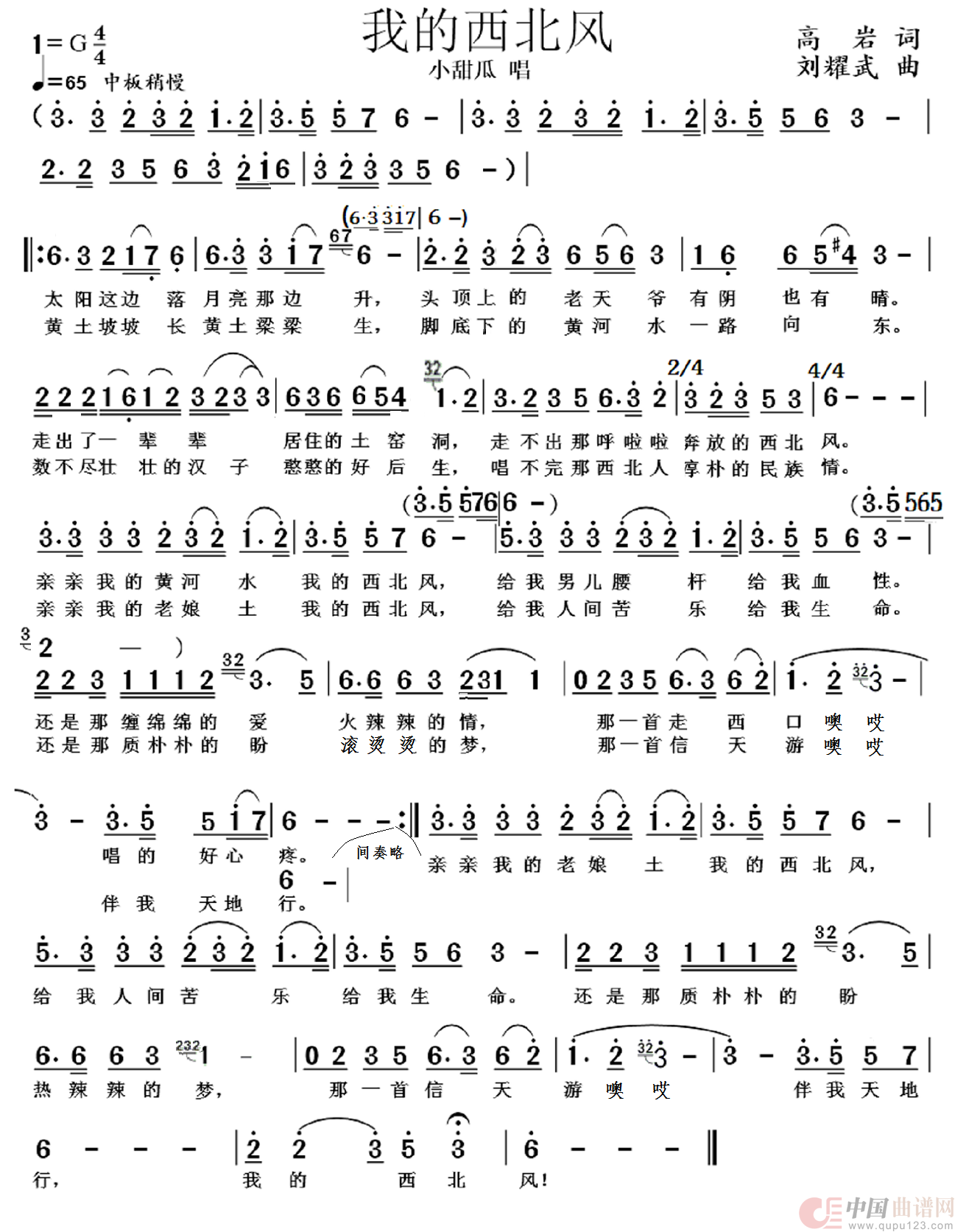 关于《我的西北风》曲谱的评论