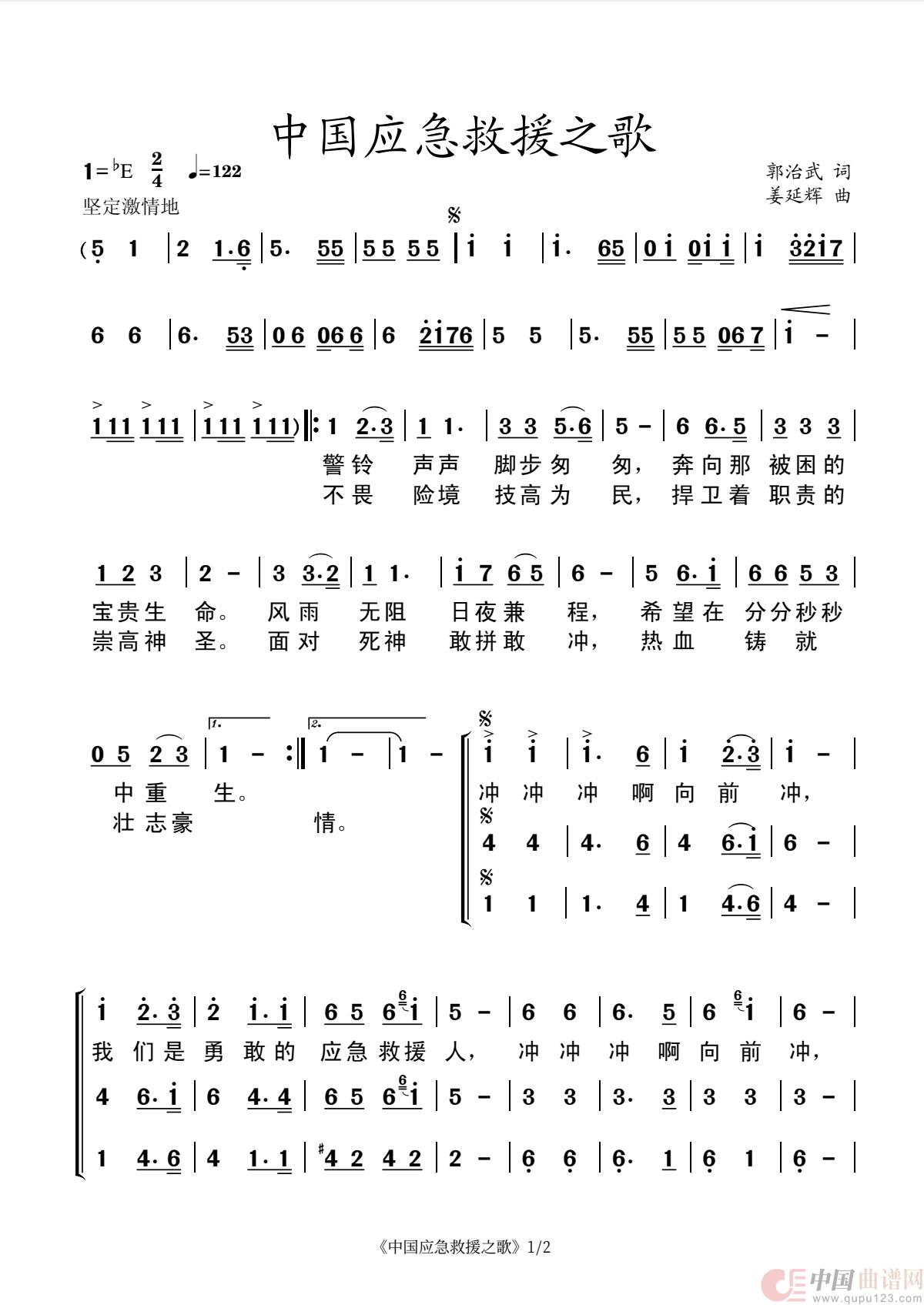 关于《中国应急救援之歌》曲谱的评论