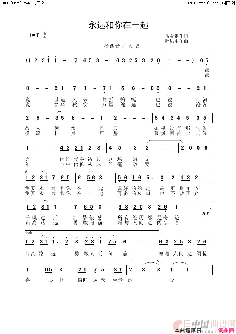 关于《永远和你在一起》曲谱的评论