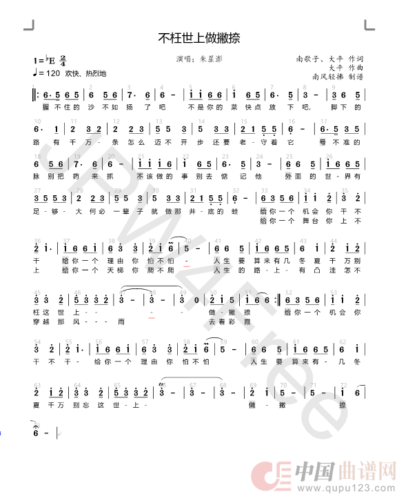 关于《不枉世上做撇捺》曲谱的评论