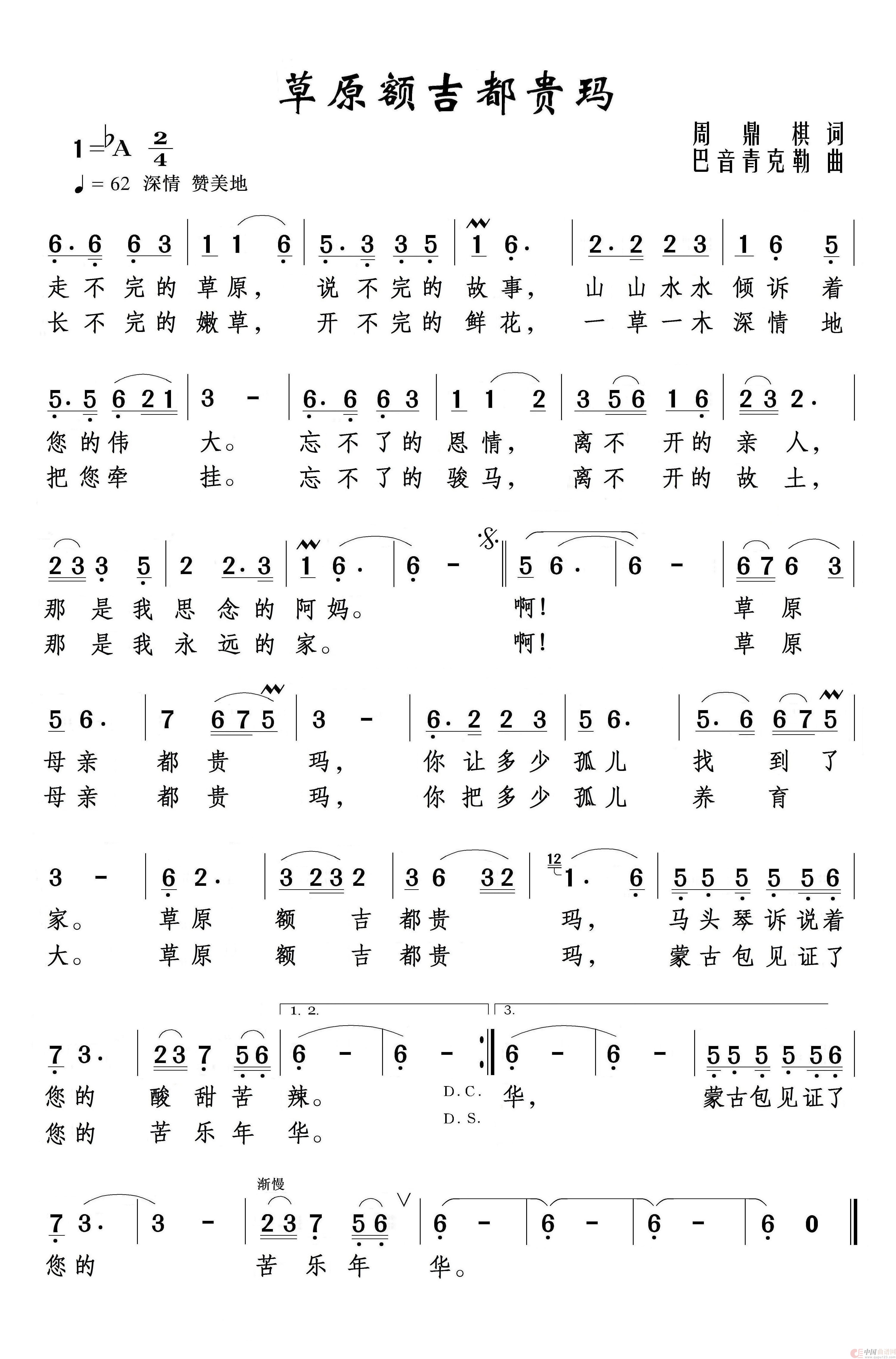 关于《草原额吉都贵玛 》曲谱的评论