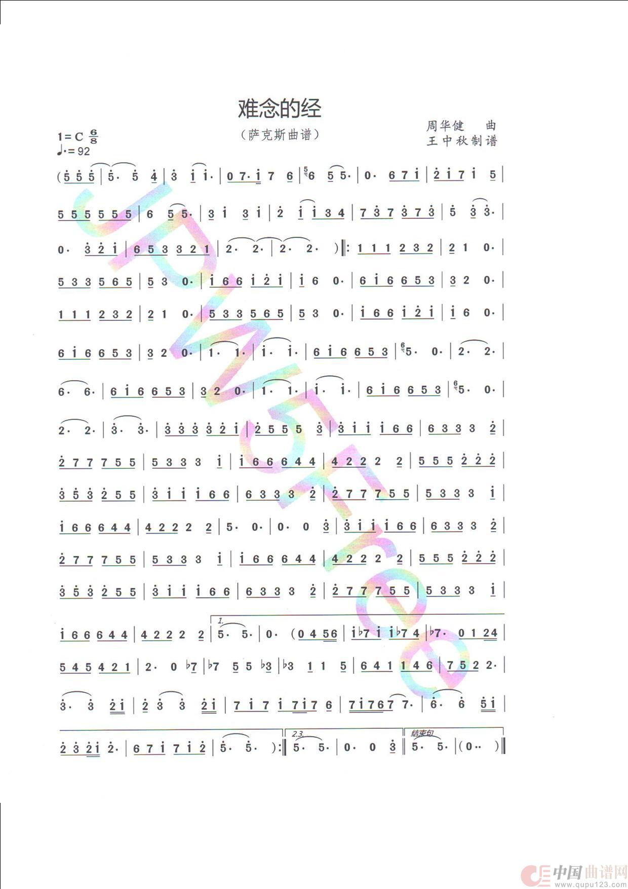 提示:在曲谱图片上单击右键,选择“图片另存为...”即可将曲谱保存到您的电脑中,打印时候可将图片插入到WORD中,调整合适大小打印即可。