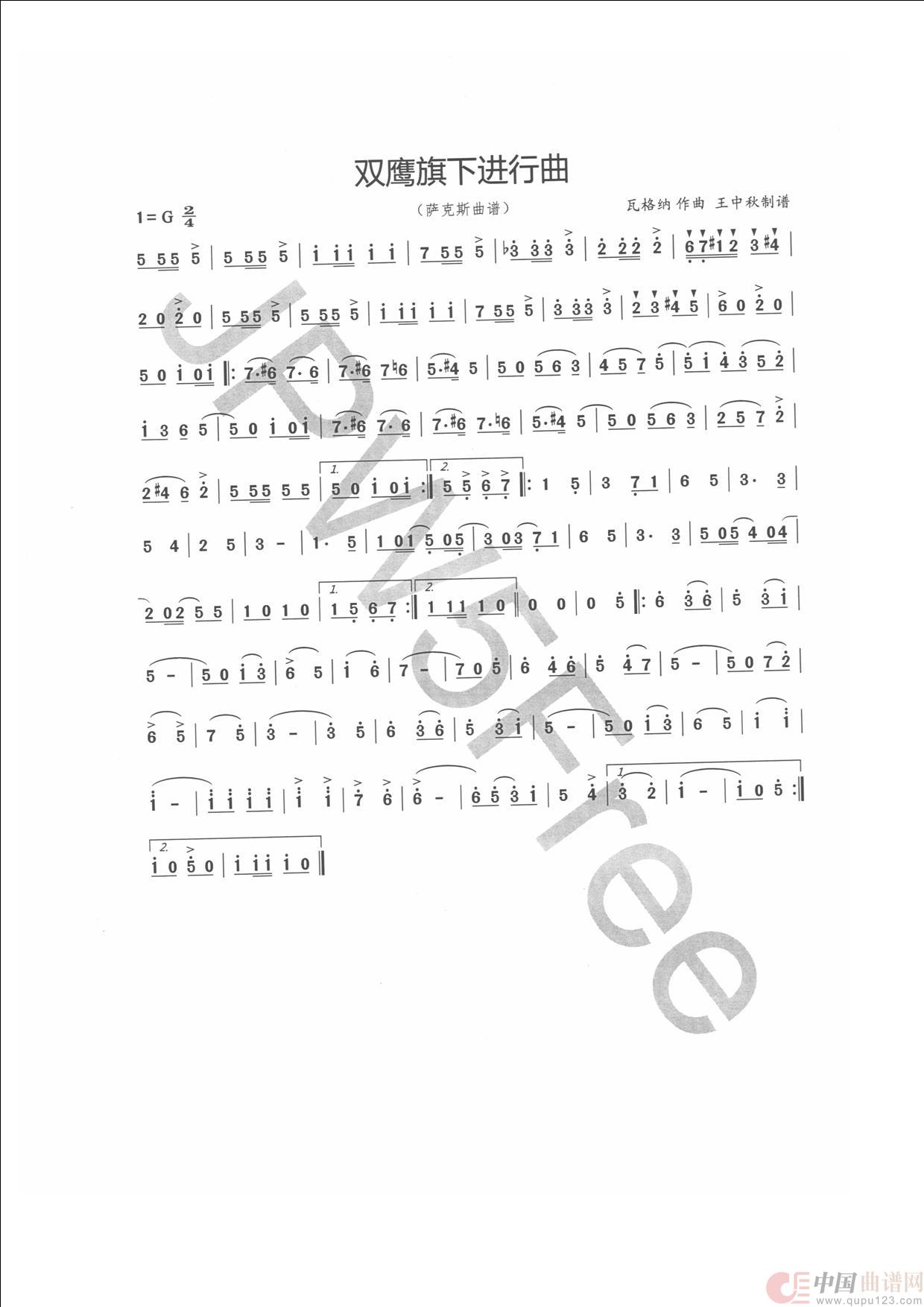 提示:在曲谱图片上单击右键,选择“图片另存为...”即可将曲谱保存到您的电脑中,打印时候可将图片插入到WORD中,调整合适大小打印即可。