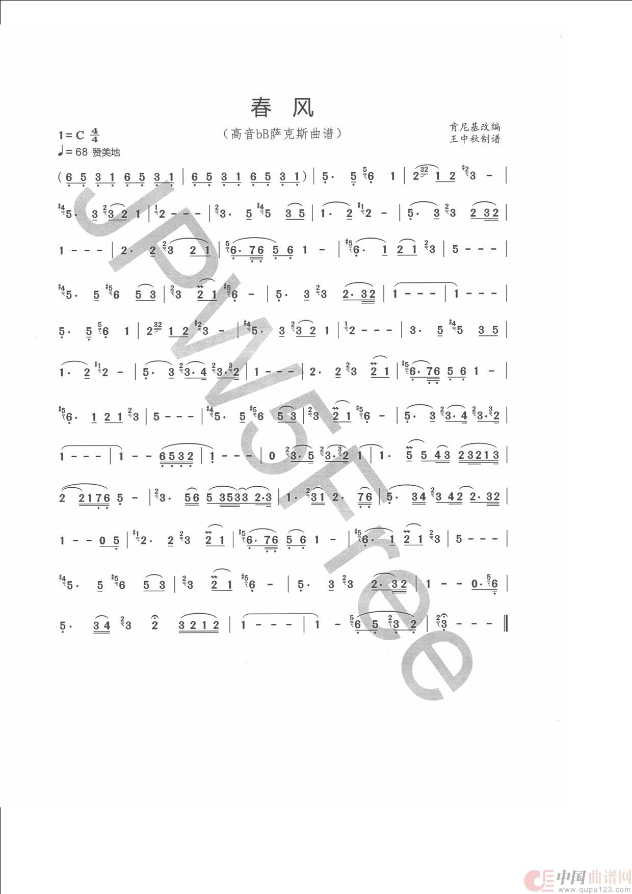提示:在曲谱图片上单击右键,选择“图片另存为...”即可将曲谱保存到您的电脑中,打印时候可将图片插入到WORD中,调整合适大小打印即可。