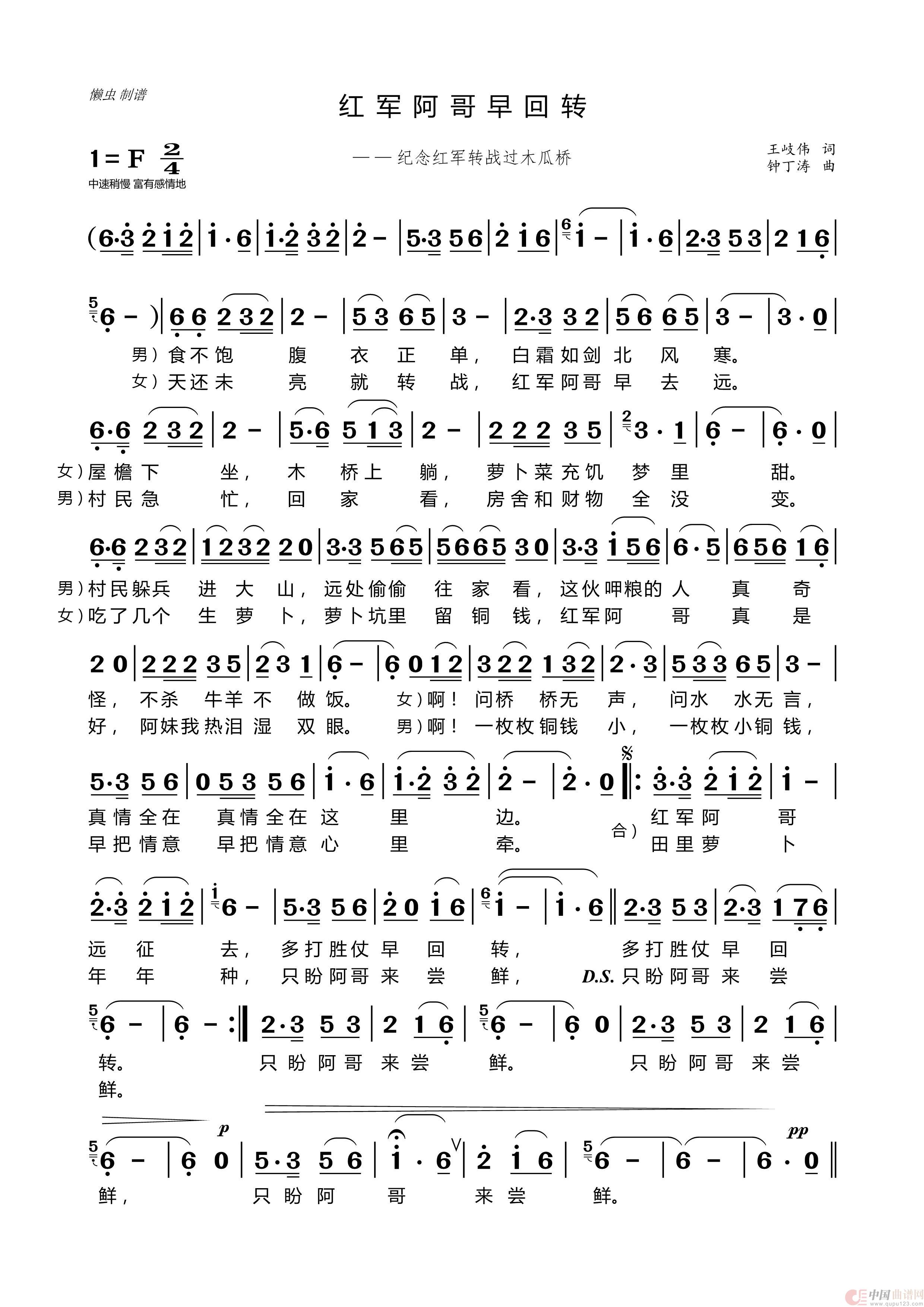 关于《红军阿哥早回转》曲谱的评论