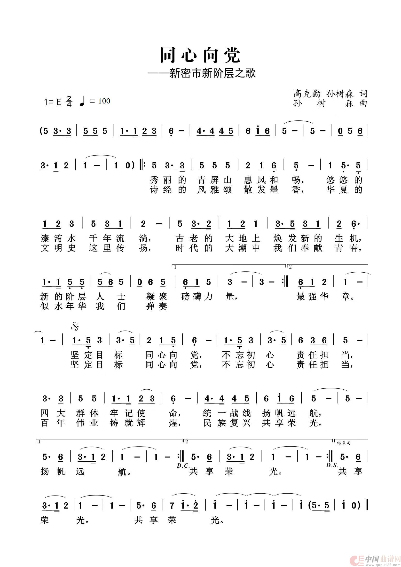 关于《同心向党》曲谱的评论