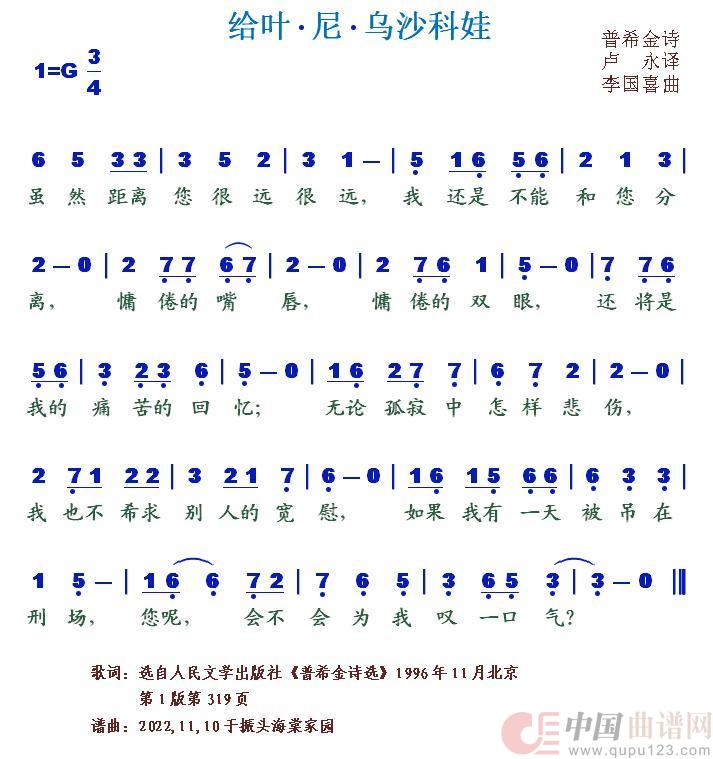关于《给叶•尼•乌沙科娃》曲谱的评论
