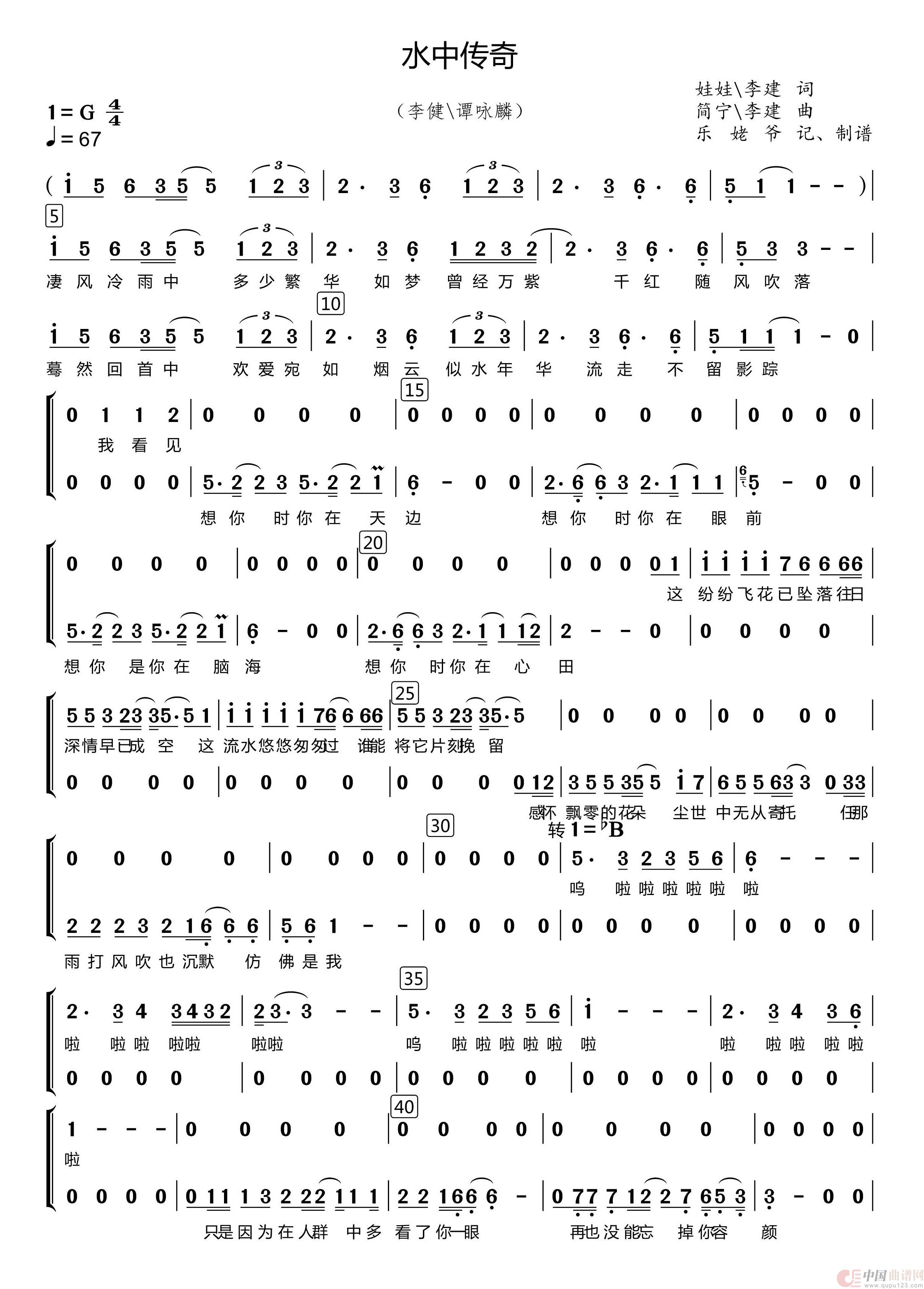 作词:李建\娃娃 作曲:李建\简宁 演唱(奏):李建\谭咏麟 来源:记谱、自制 上传:刀木云-1979