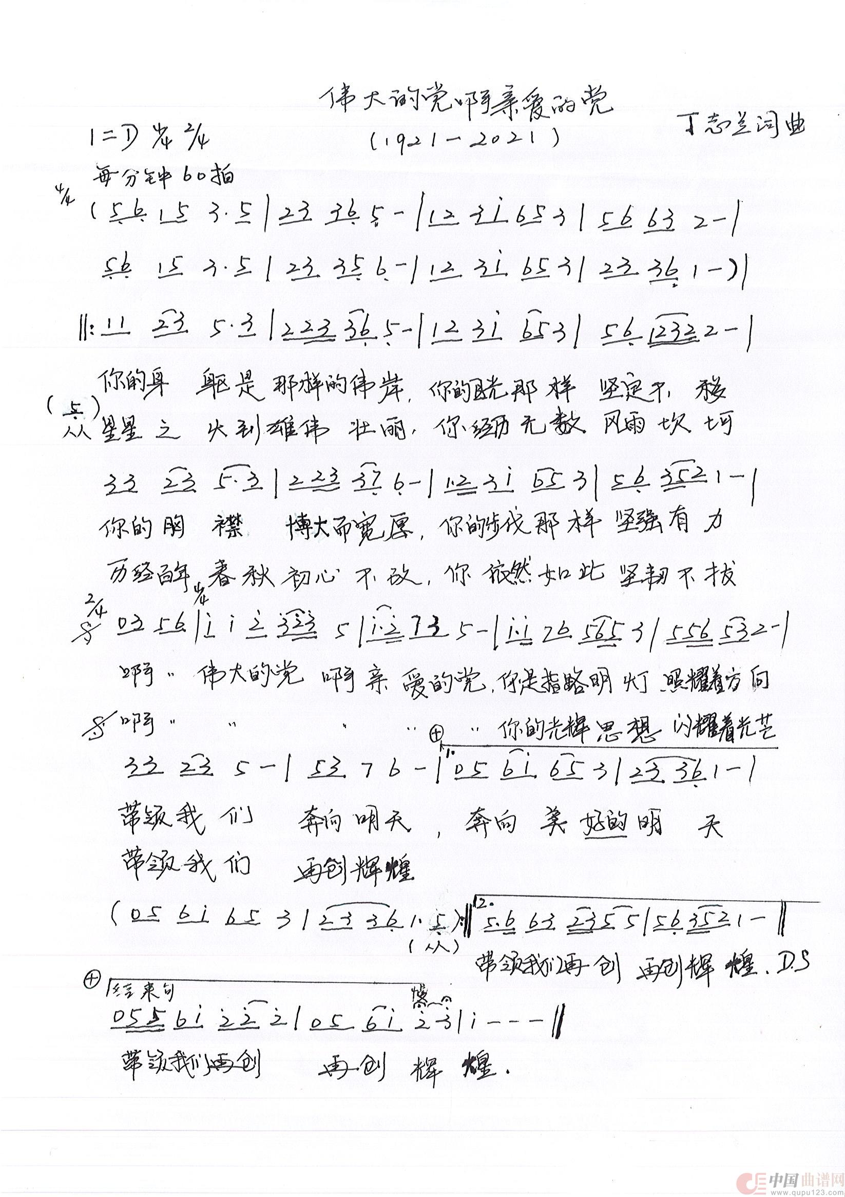 关于《伟大的党啊亲爱的党》曲谱的评论