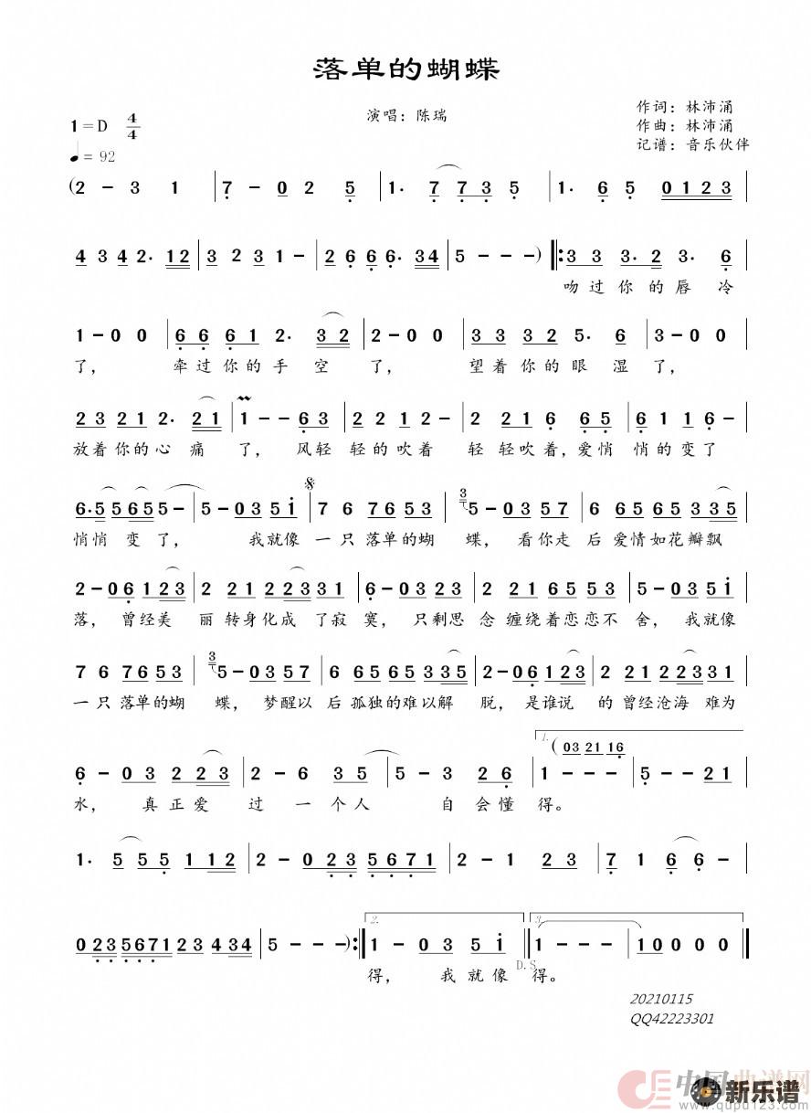 关于《落单的蝴蝶》曲谱的评论