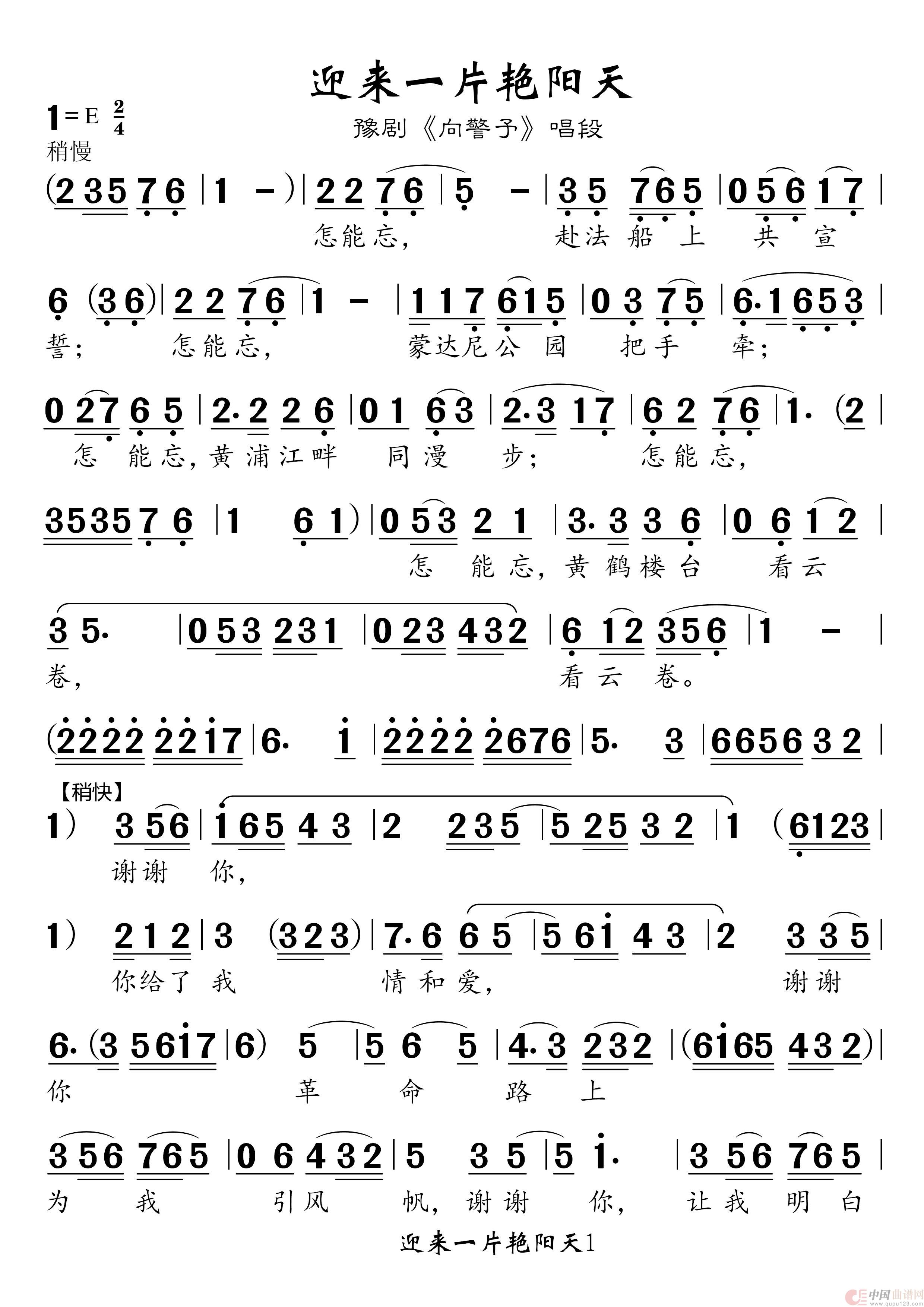 豫剧曲谱《迎来一片艳阳天》(向警予 唱段)