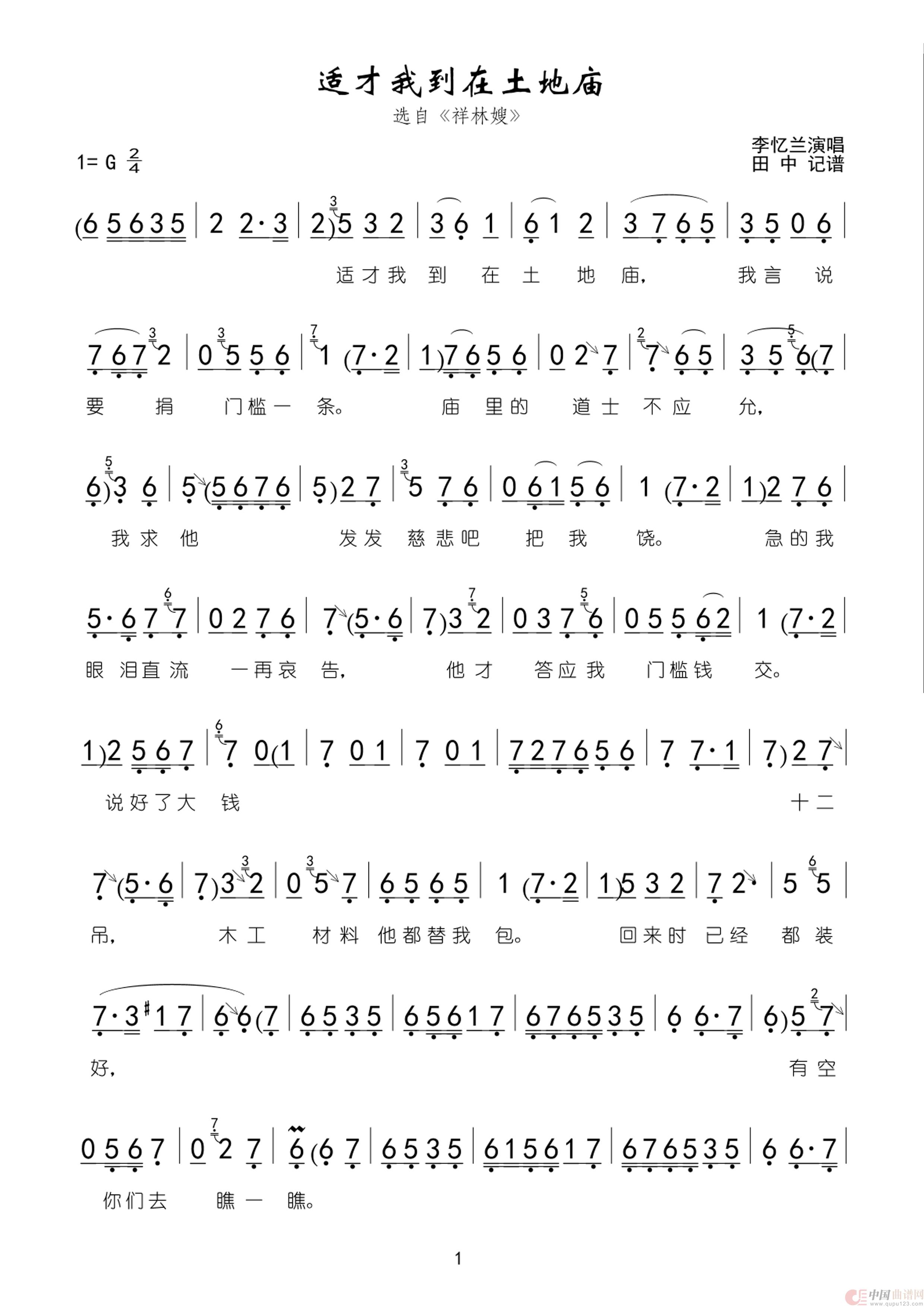 适才我到在土地庙(选自评剧《祥林嫂》)