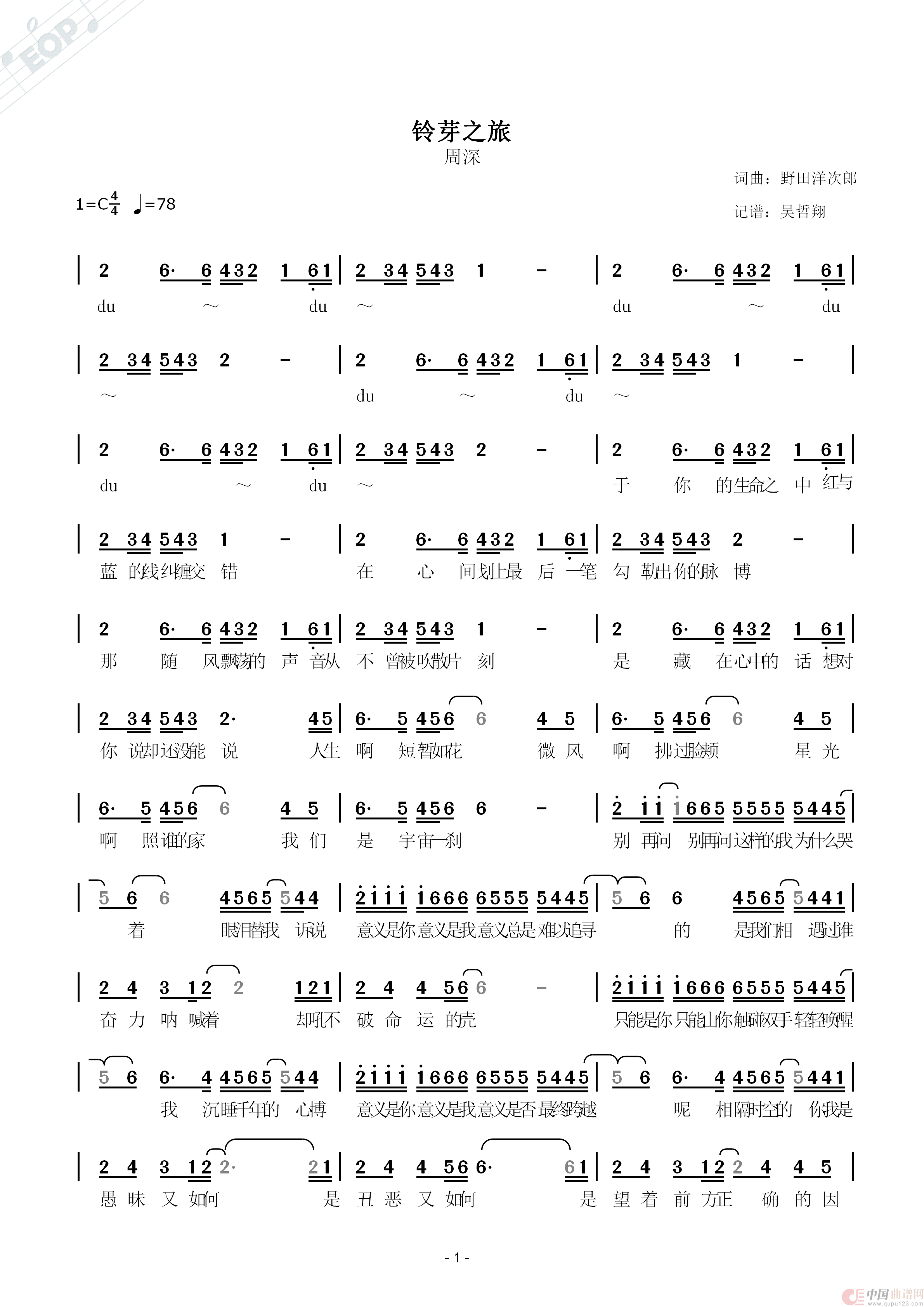 提示:在曲谱图片上单击右键,选择“图片另存为...”即可将曲谱保存到您的电脑中,打印时候可将图片插入到WORD中,调整合适大小打印即可。