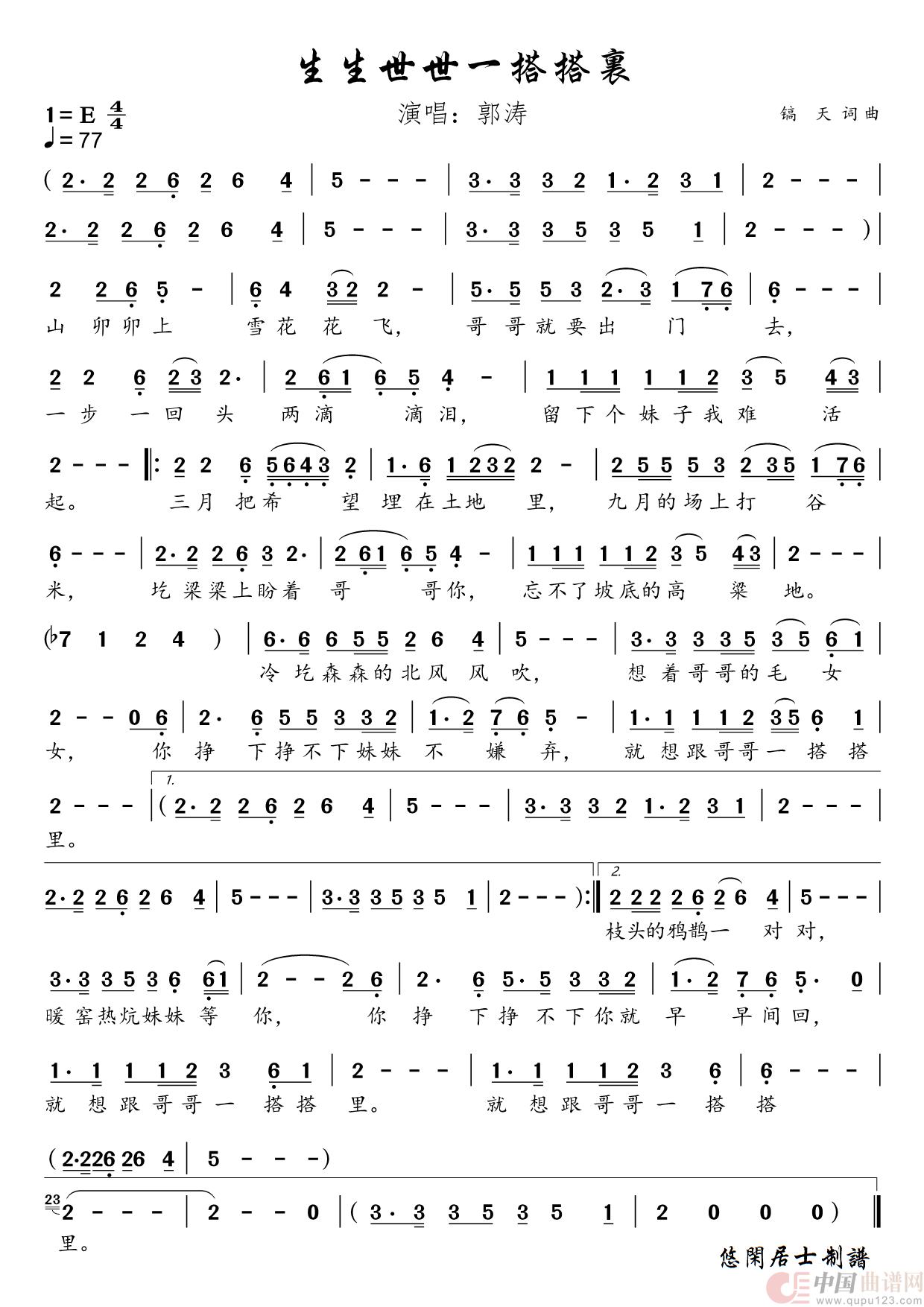 关于《生生世世一搭搭里》曲谱的评论