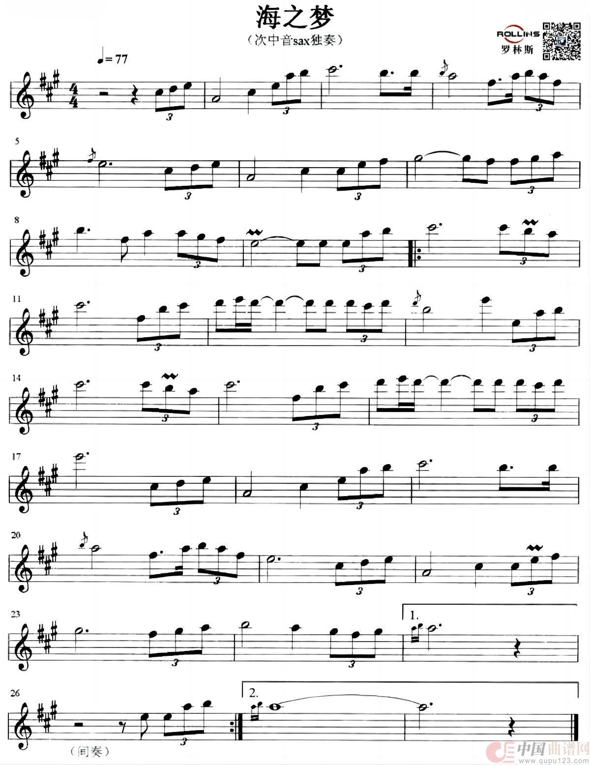 提示:在曲谱图片上单击右键,选择“图片另存为...”即可将曲谱保存到您的电脑中,打印时候可将图片插入到WORD中,调整合适大小打印即可。