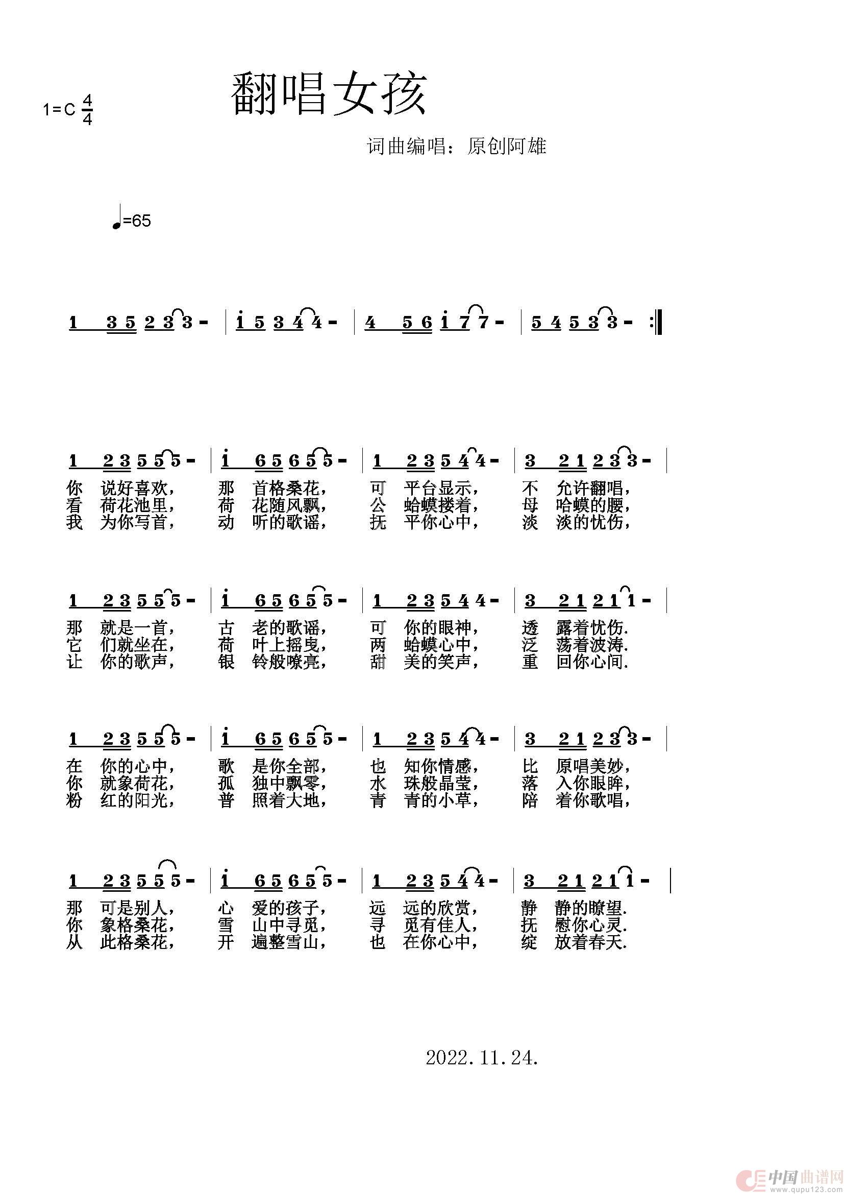 提示:在曲谱图片上单击右键,选择“图片另存为...”即可将曲谱保存到您的电脑中,打印时候可将图片插入到WORD中,调整合适大小打印即可。