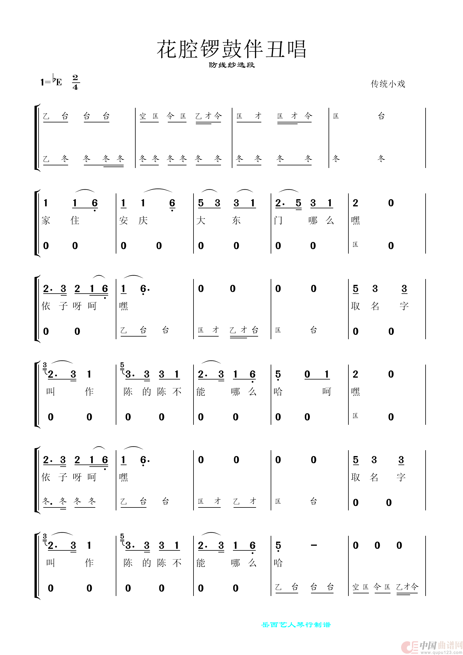 关于《花腔锣鼓伴丑唱《防线纱选段 》》曲谱的评论