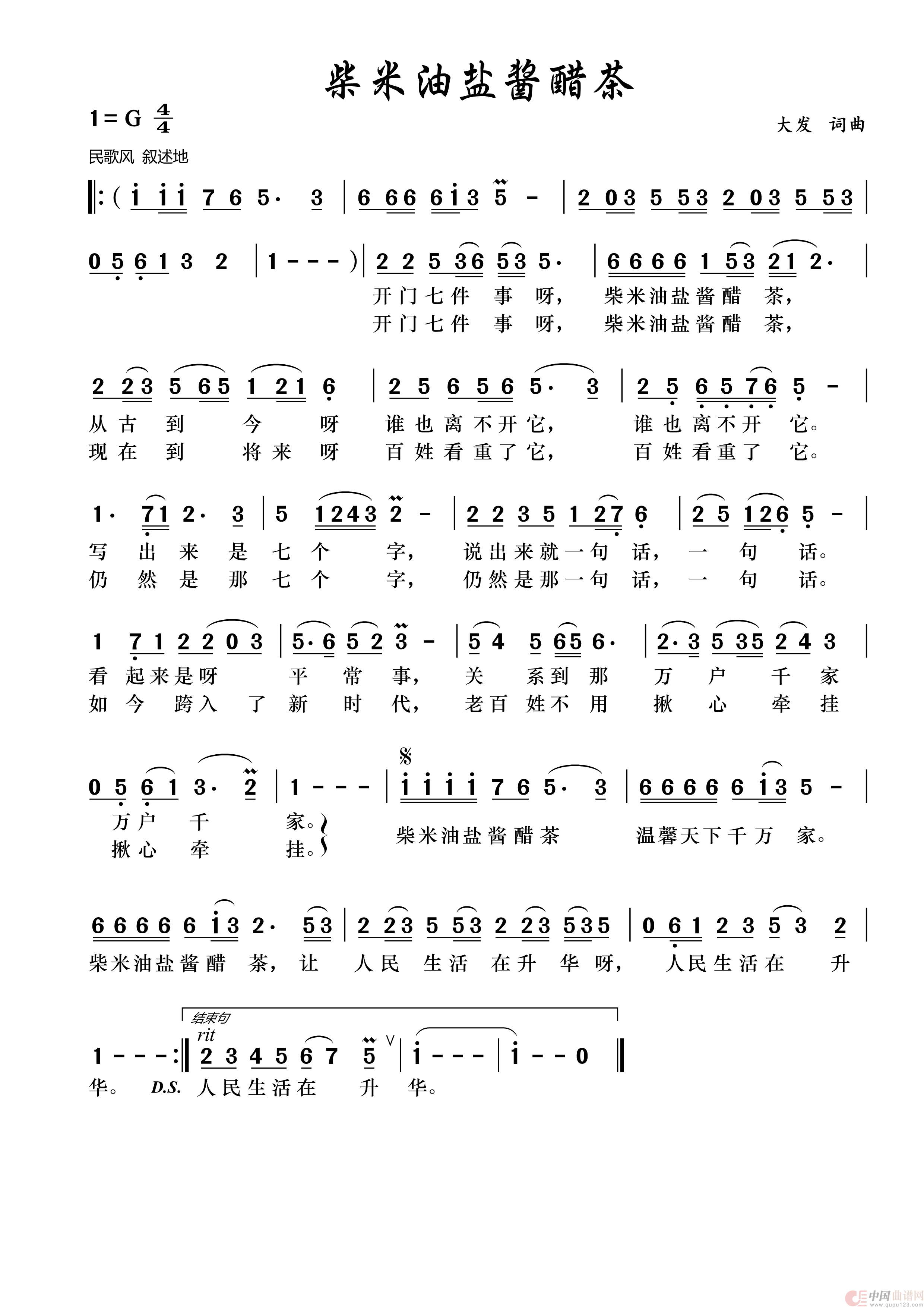关于《柴米油盐酱醋茶》曲谱的评论