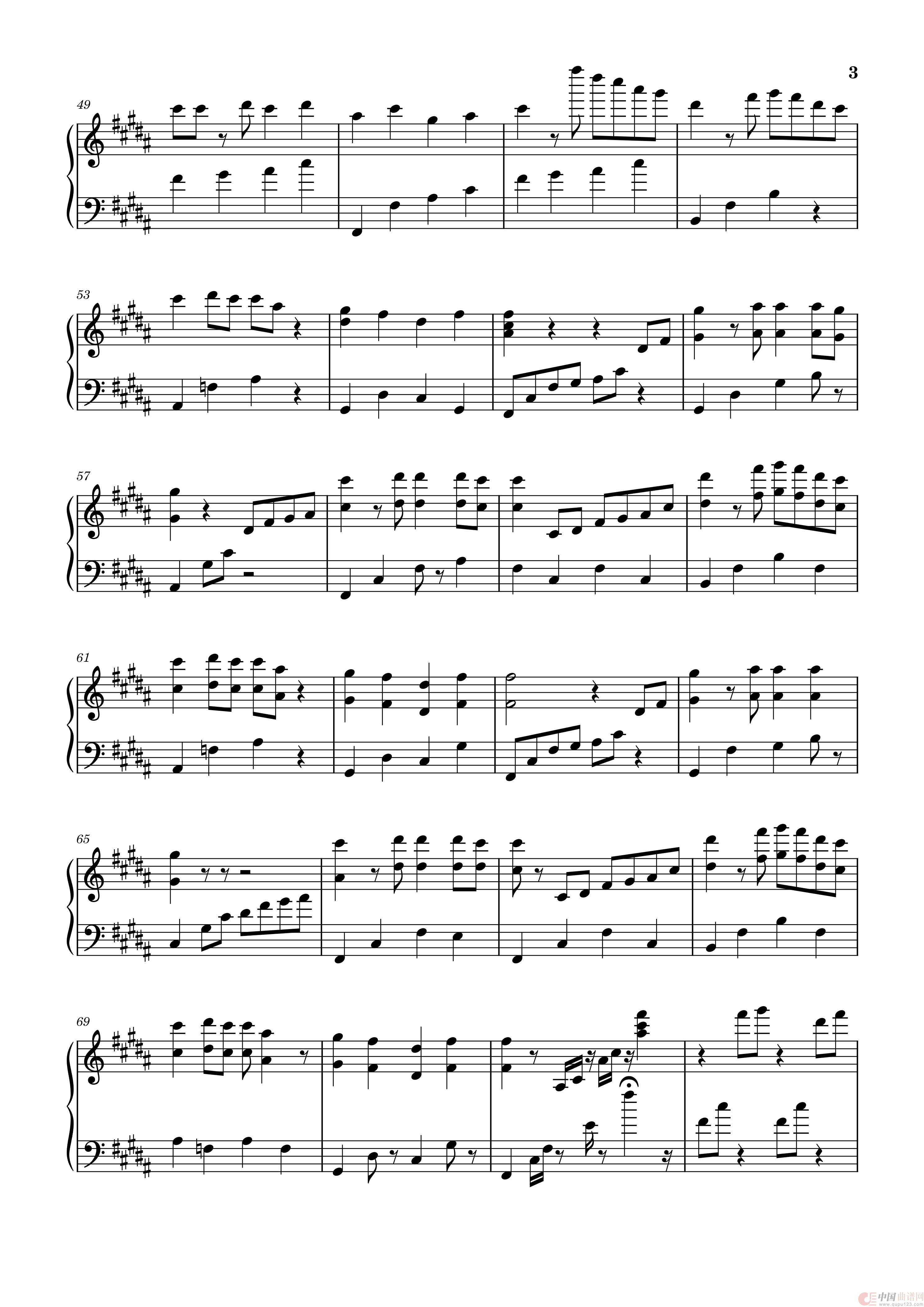 提示:在曲谱图片上单击右键,选择“图片另存为...”即可将曲谱保存到您的电脑中,打印时候可将图片插入到WORD中,调整合适大小打印即可。