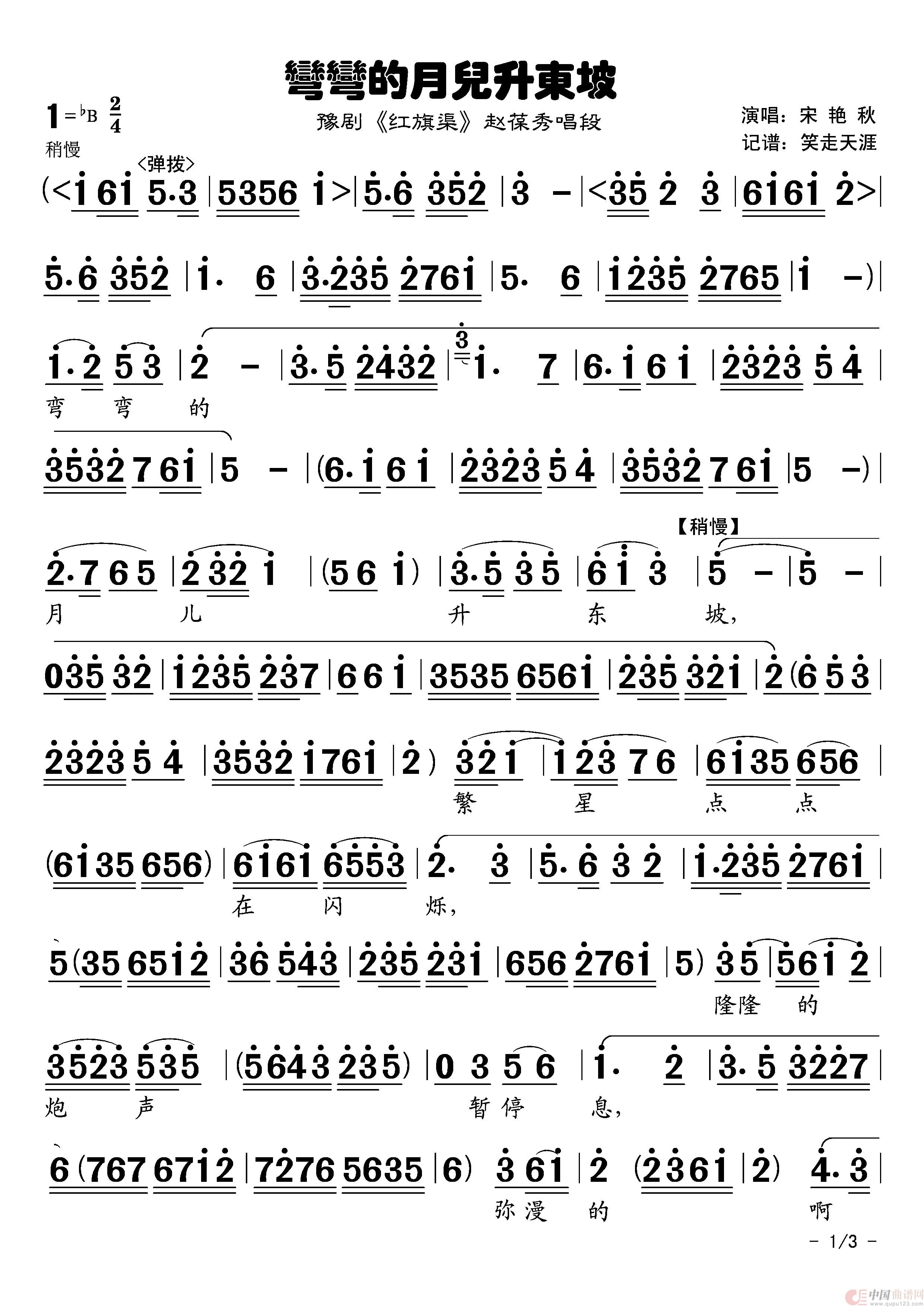 关于《豫剧曲谱《弯弯的月儿升东坡》》曲谱的评论