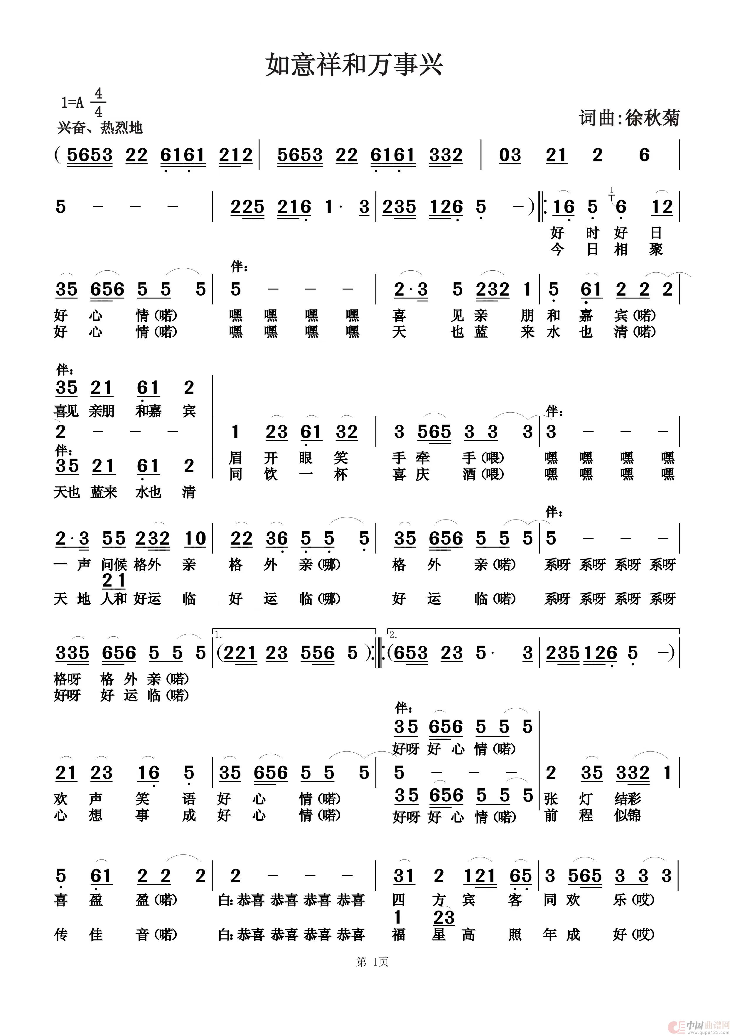关于《如意祥和万事兴》曲谱的评论