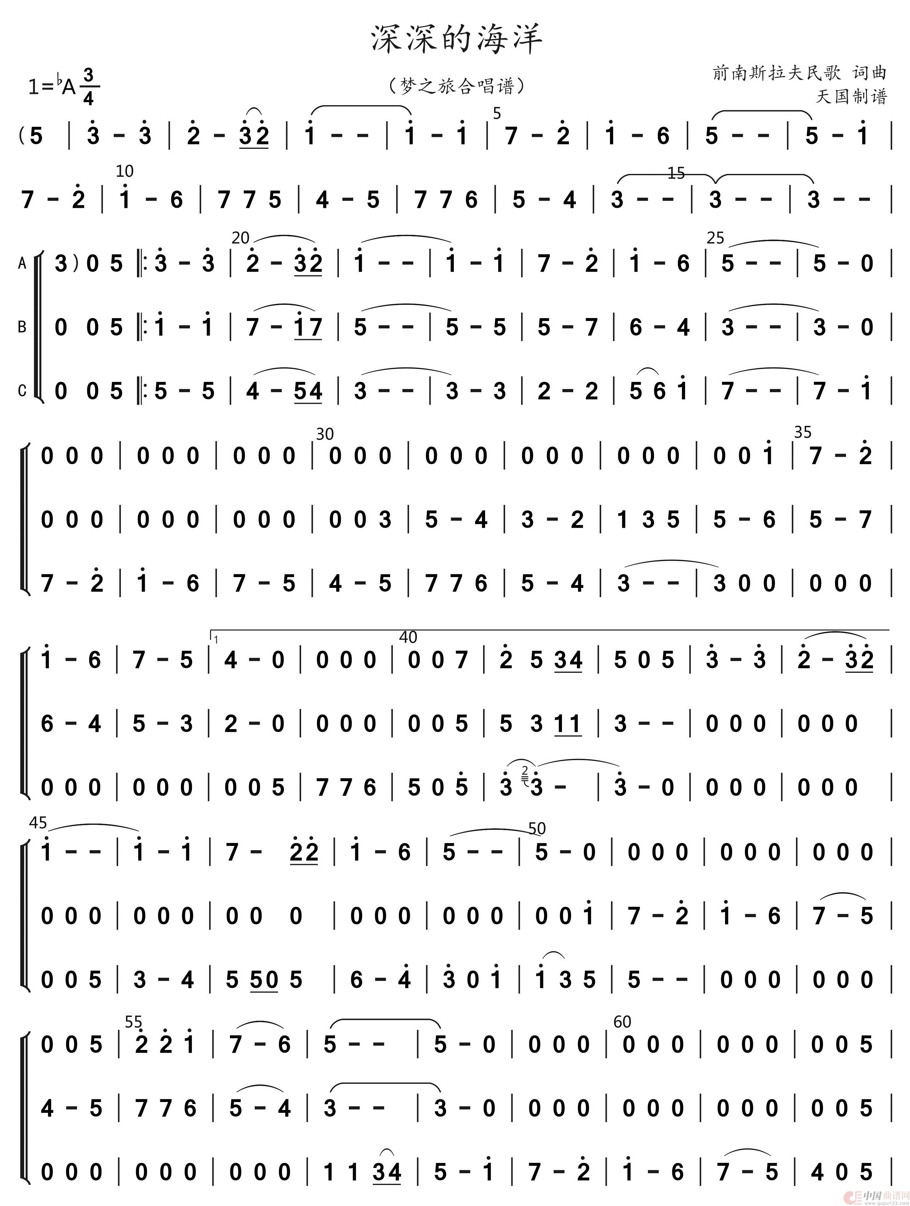 关于《深深的海洋(四声部)》曲谱的评论