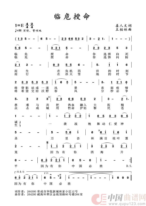 关于《临危受命》曲谱的评论