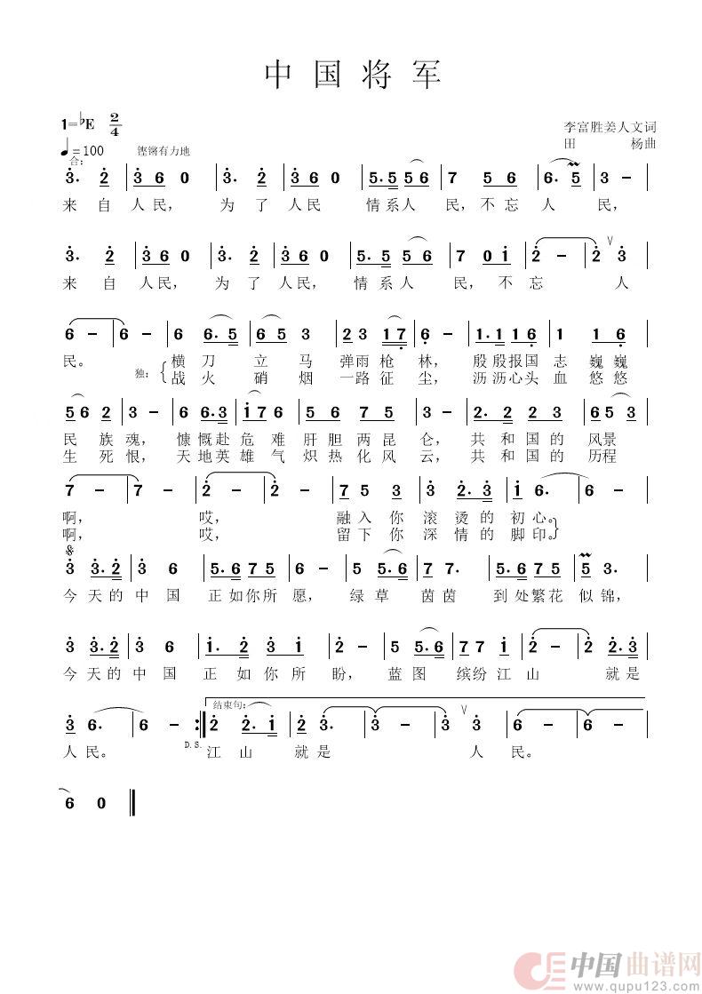 关于《中国将军》曲谱的评论