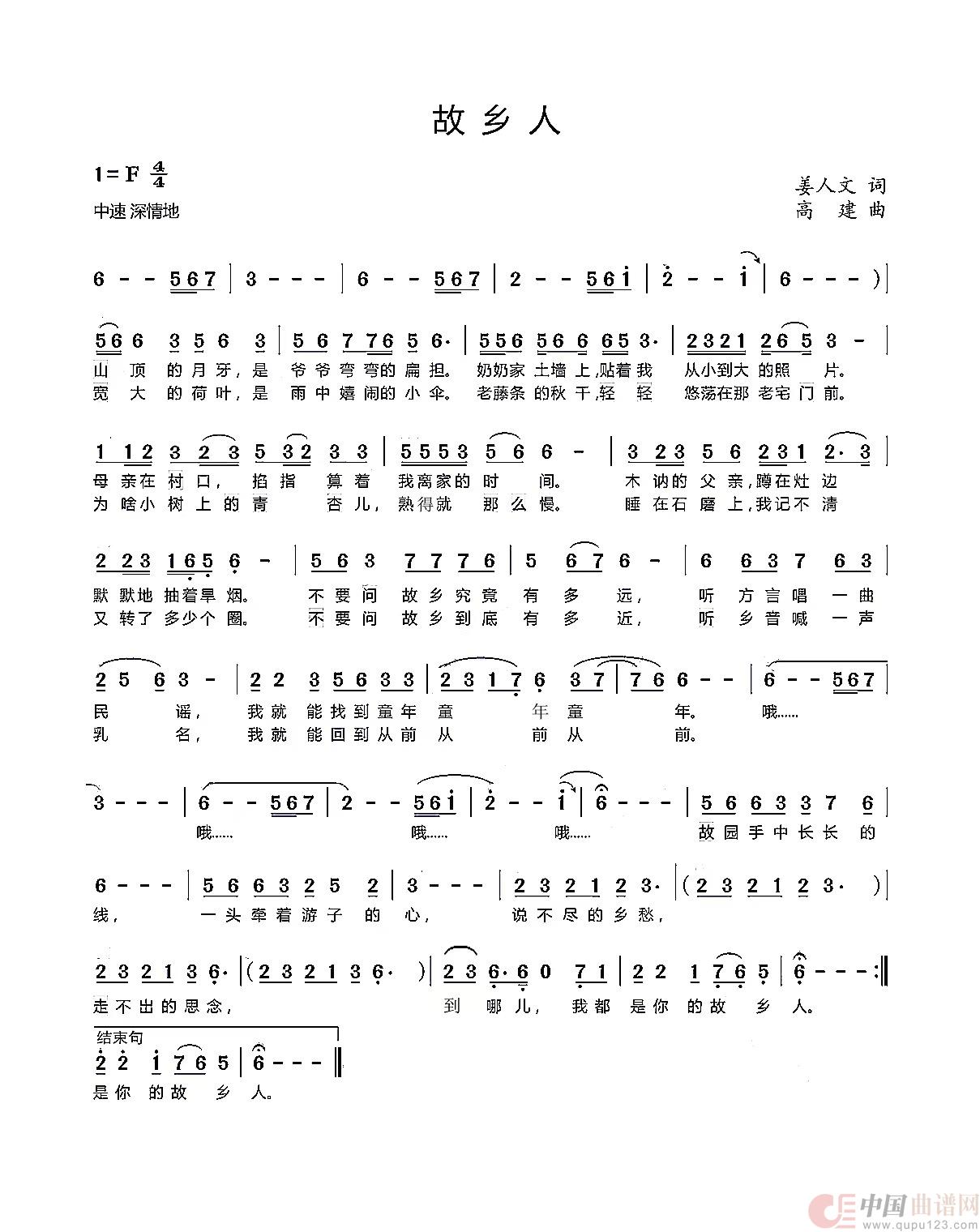 关于《故乡人》曲谱的评论