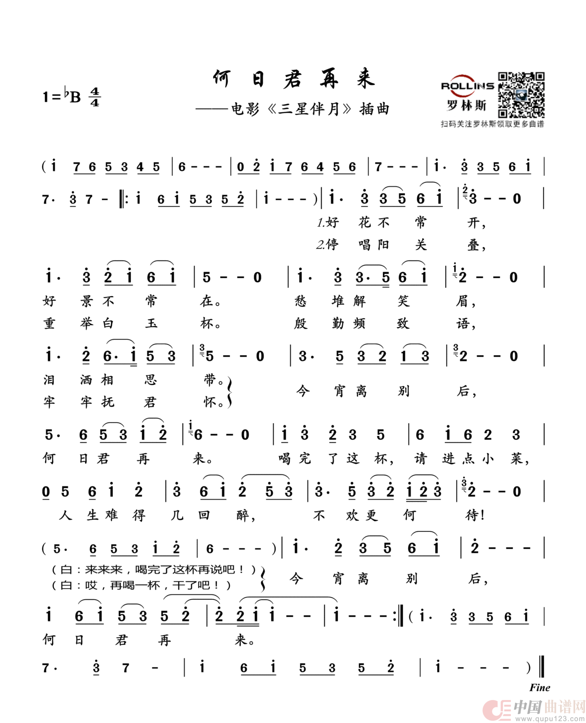 关于《何日君再来》曲谱的评论