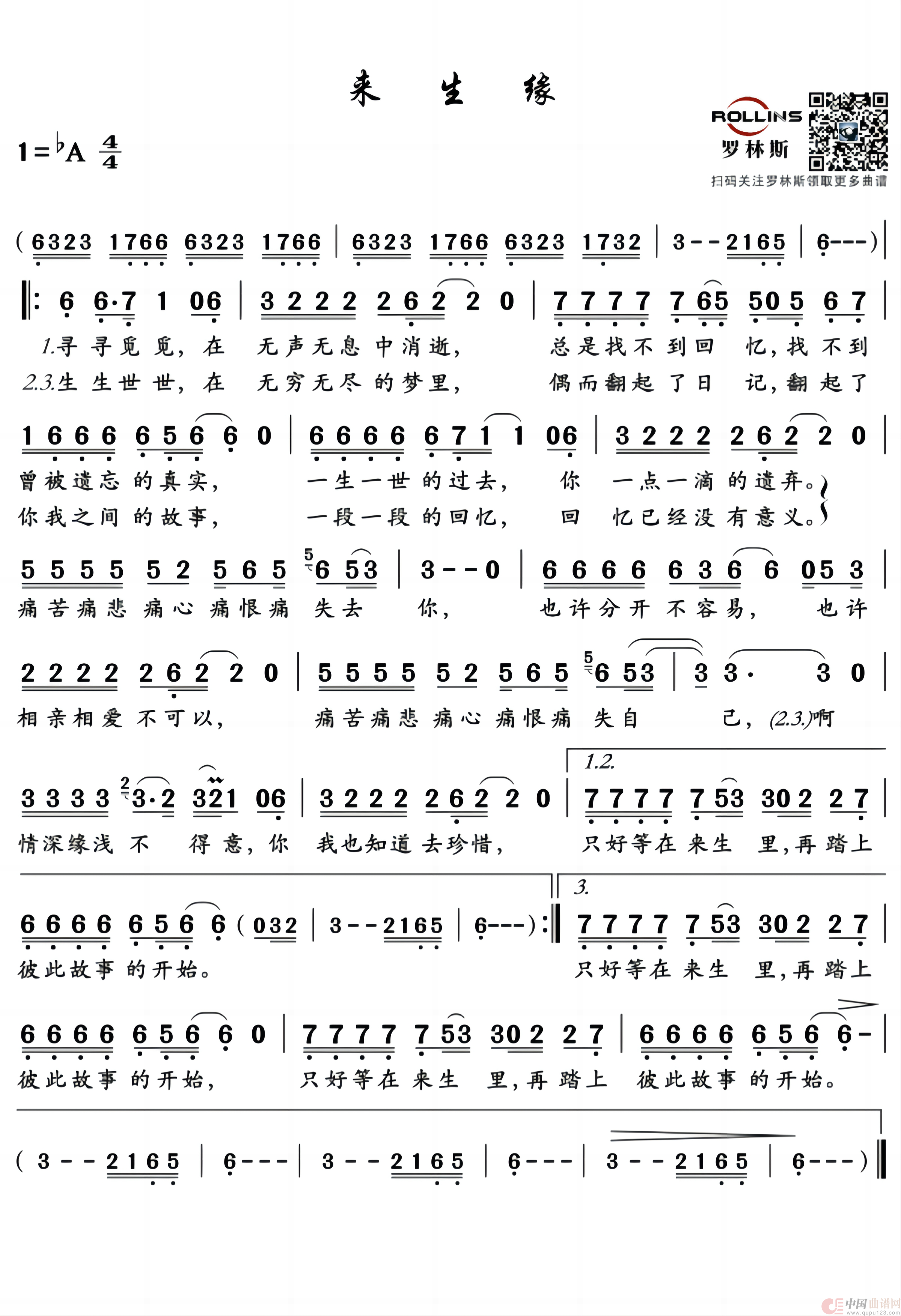 关于《来生缘》曲谱的评论