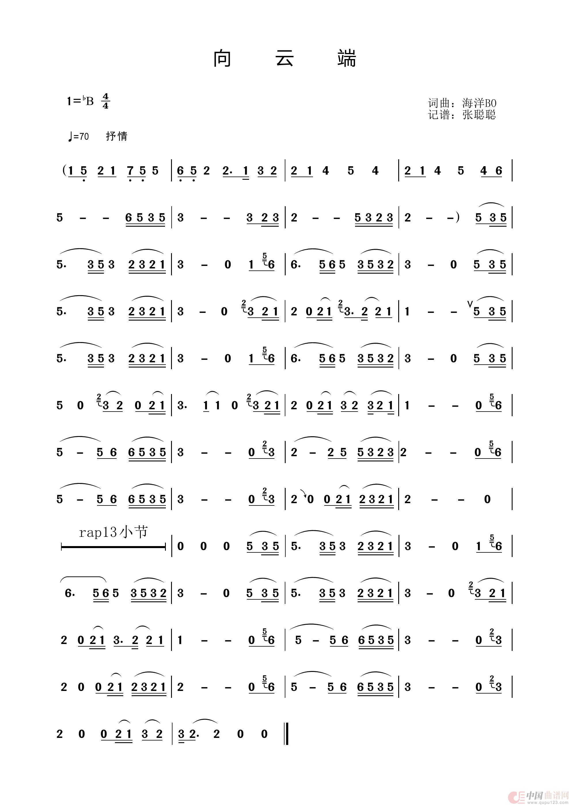 作词 : 海洋Bo作曲 : 海洋Bo编曲:王大夫制作人:张泽宥/小贾出品:网易飓风 X索尼音乐向云端山那边海里面真实的我应该走向哪边日落前风来临石墩下我在盘腿坐着人到底靠什么来定义丑恶神啊你在哪山啊我害怕海啊也带不走尽头到底有没有如果你很难过不如先收拾你的房间别再辗转反侧等会儿阳光会照在你的旁边没洗的别再攒着换个新的发型买个好看的包压抑焦虑心情忐忑就去养只爱你的猫不是不如意也许你并没围着自己的赛道走你真的很美丽为什么常说自己的外貌丑或许你像我一样很胖生活让你感到卑贱那么当你听到这首歌的时候选择与我共同蜕变也许你现在很难过也许正躺在被窝也许你现在很迷茫正在酒吧里坐着也许你在工作或者刚刚分手了也许你在山脚下会情不自禁的哼出这首歌向云端山那边海里面真实的你在于怎么选择神啊你在哪山啊我害怕海啊带走哀愁就像带走每条河流吉他:王大夫混音工程师:何世渝母带工程师:何世渝和声:小手鹅口琴:张德斌制作协力:李彦泽人声录音:吴身宝@Soundhub Studios人声录音:沈锦天@ROOM 4A营销:网易飓风企划:徐思灵项目统筹:宋旭辉 Shawn Song/李若嫣 Ruoyan Li制作统筹:赵楚峰 Chufeng Zhao艺人统筹:汪立宪 Vincent Wang监制:许雯静 Vivian Xu/刘嘉雄 Charles Liu/小贾总监制:陈国威 Andrew Chan/谢奇笛出品人:陈国威 Andrew Chan/谢奇笛关于《向云端》曲谱的评论