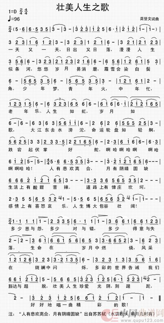 关于《壮美人生之歌》曲谱的评论