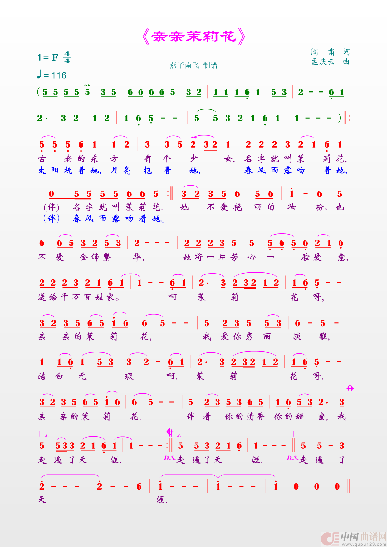 关于《亲亲茉莉花》曲谱的评论