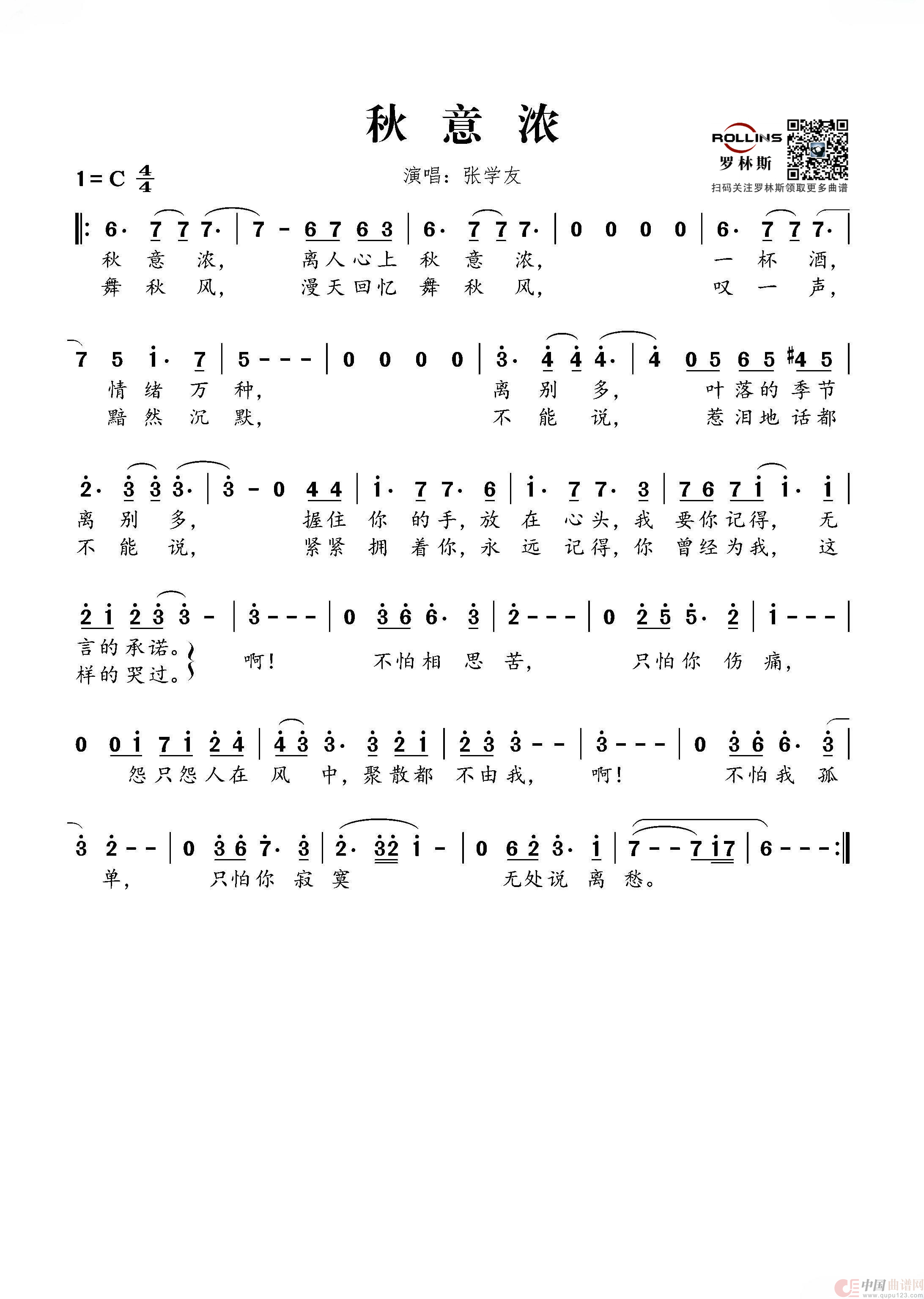 关于《秋意浓》曲谱的评论