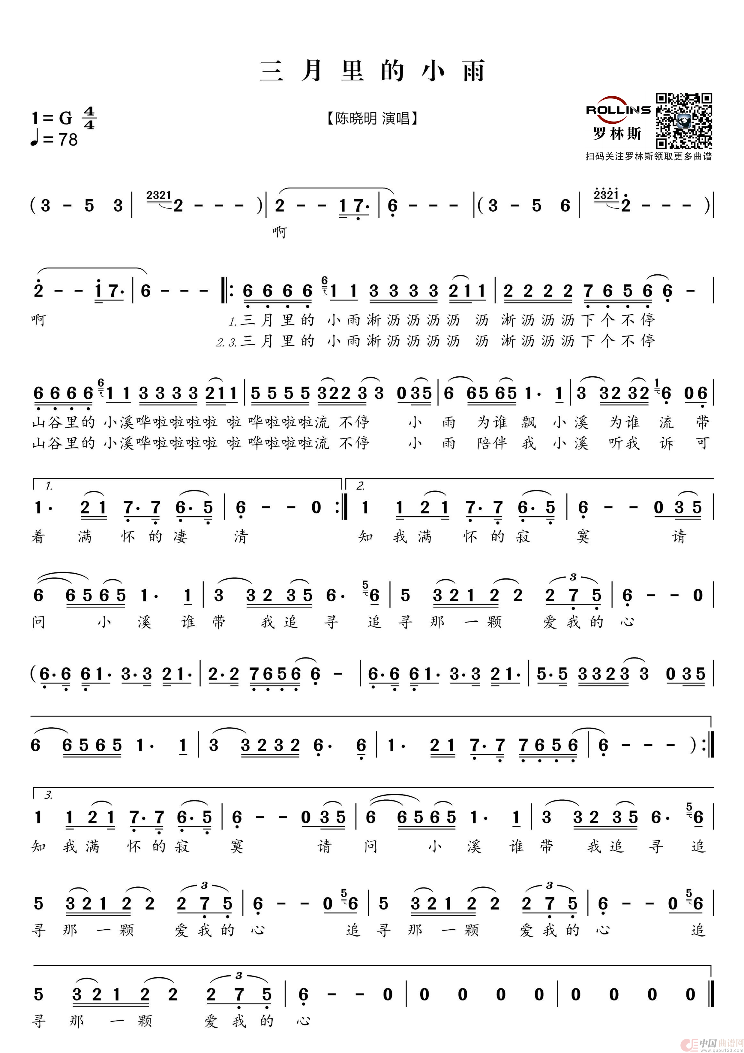 关于《三月里的小雨》曲谱的评论