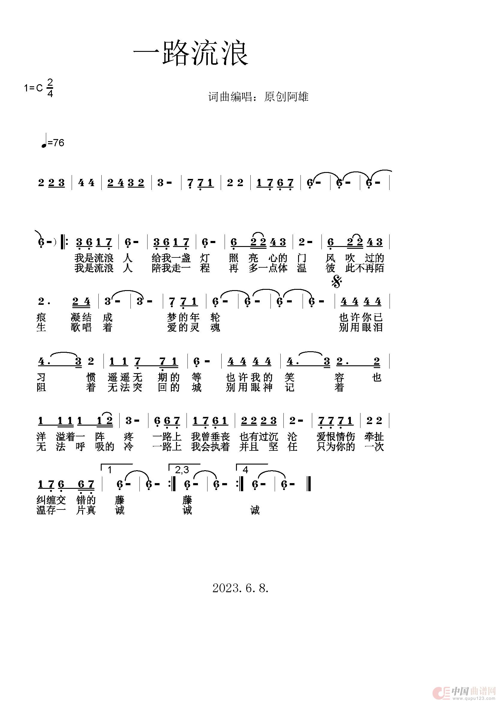 关于《一路流浪》曲谱的评论