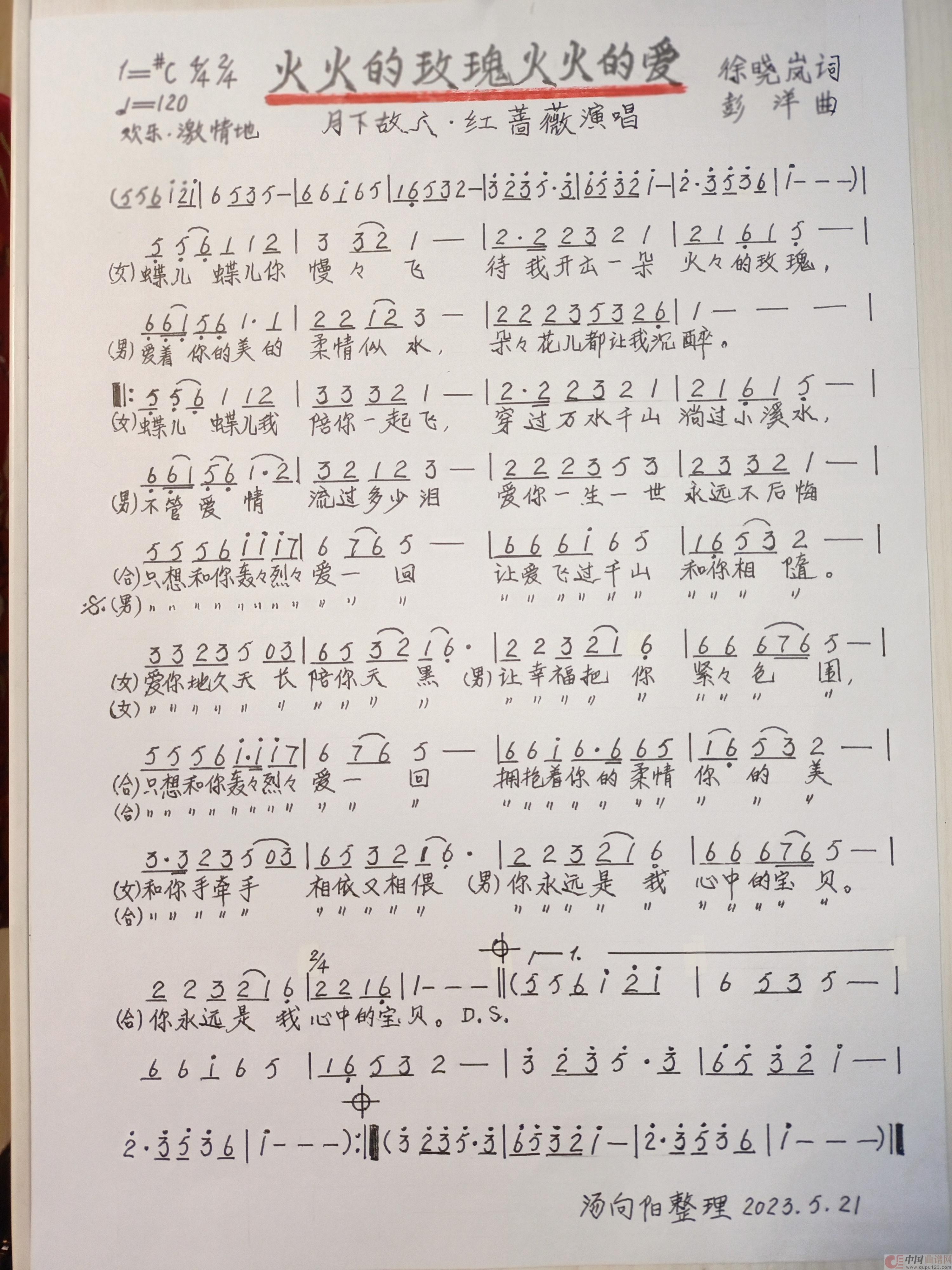 关于《火火的玫瑰火火的爱》曲谱的评论