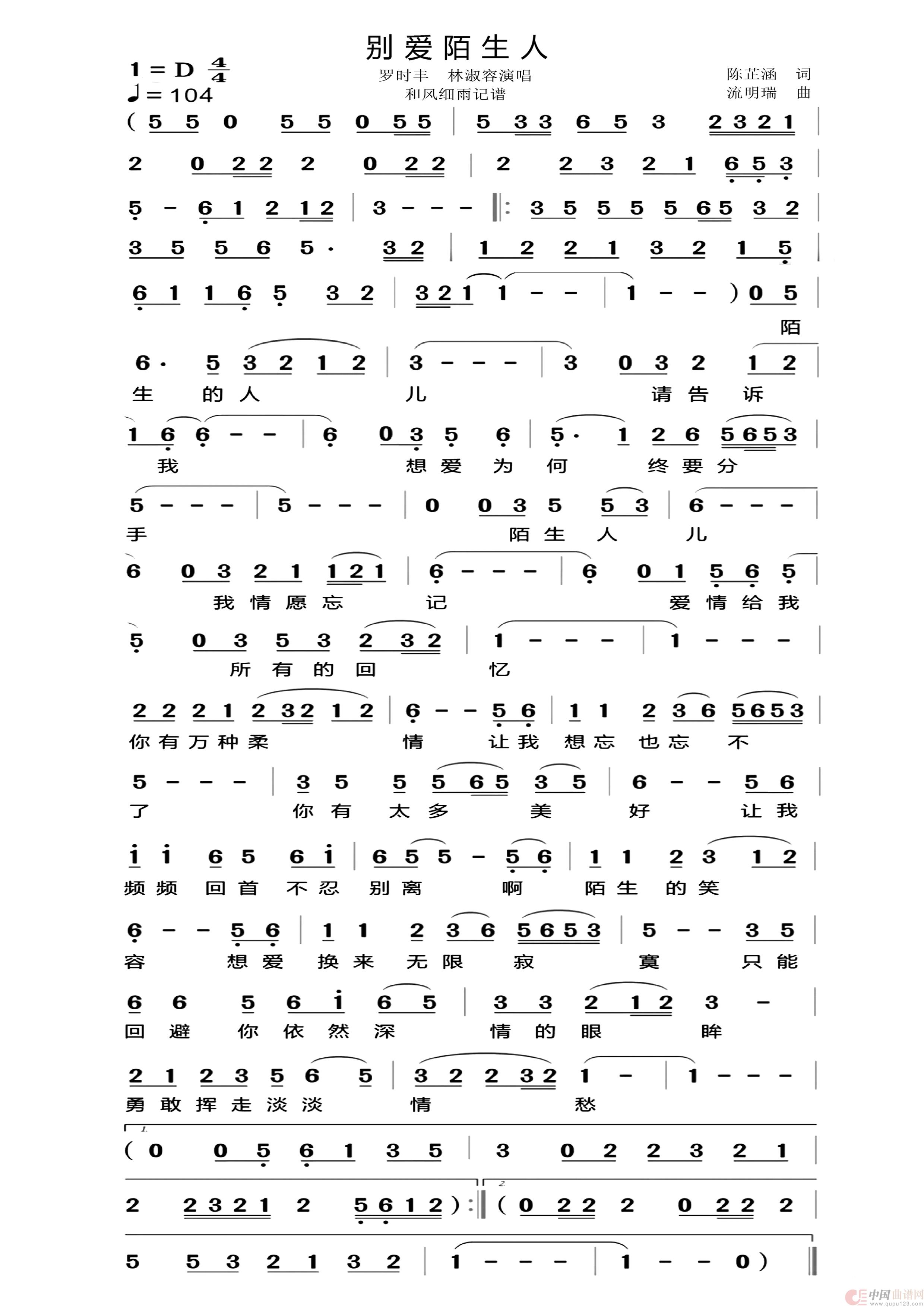 关于《别爱陌生人》曲谱的评论