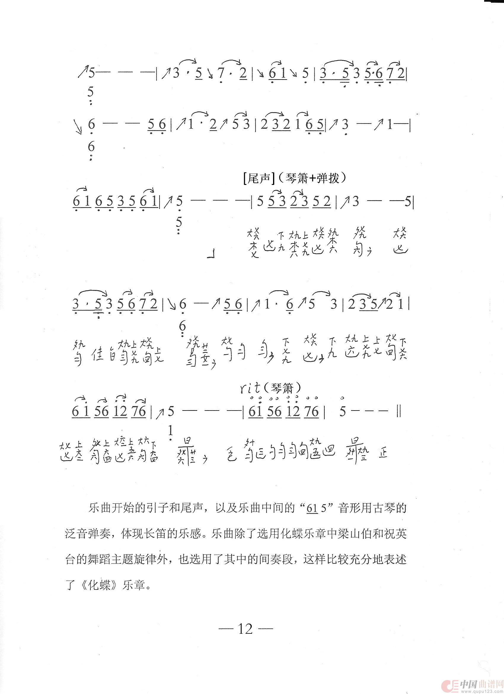 化蝶(古琴与乐队)(古琴减字谱+简谱)
