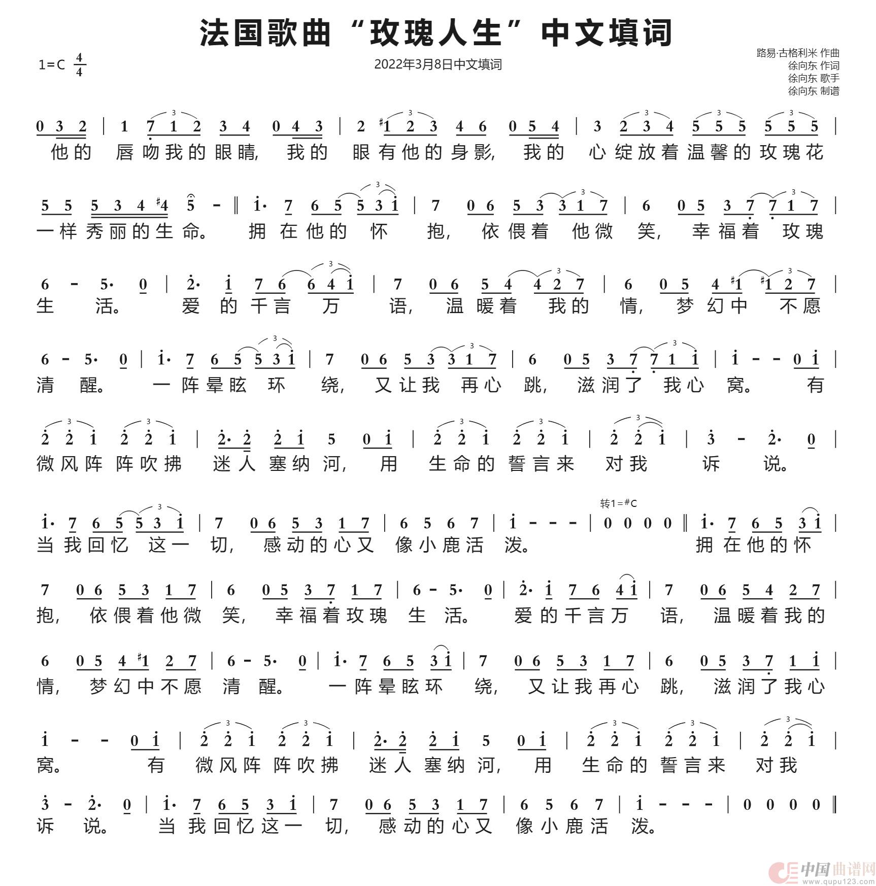 法国歌曲“玫瑰人生”中文填词(徐向东填词)(2022年3月8日填词)