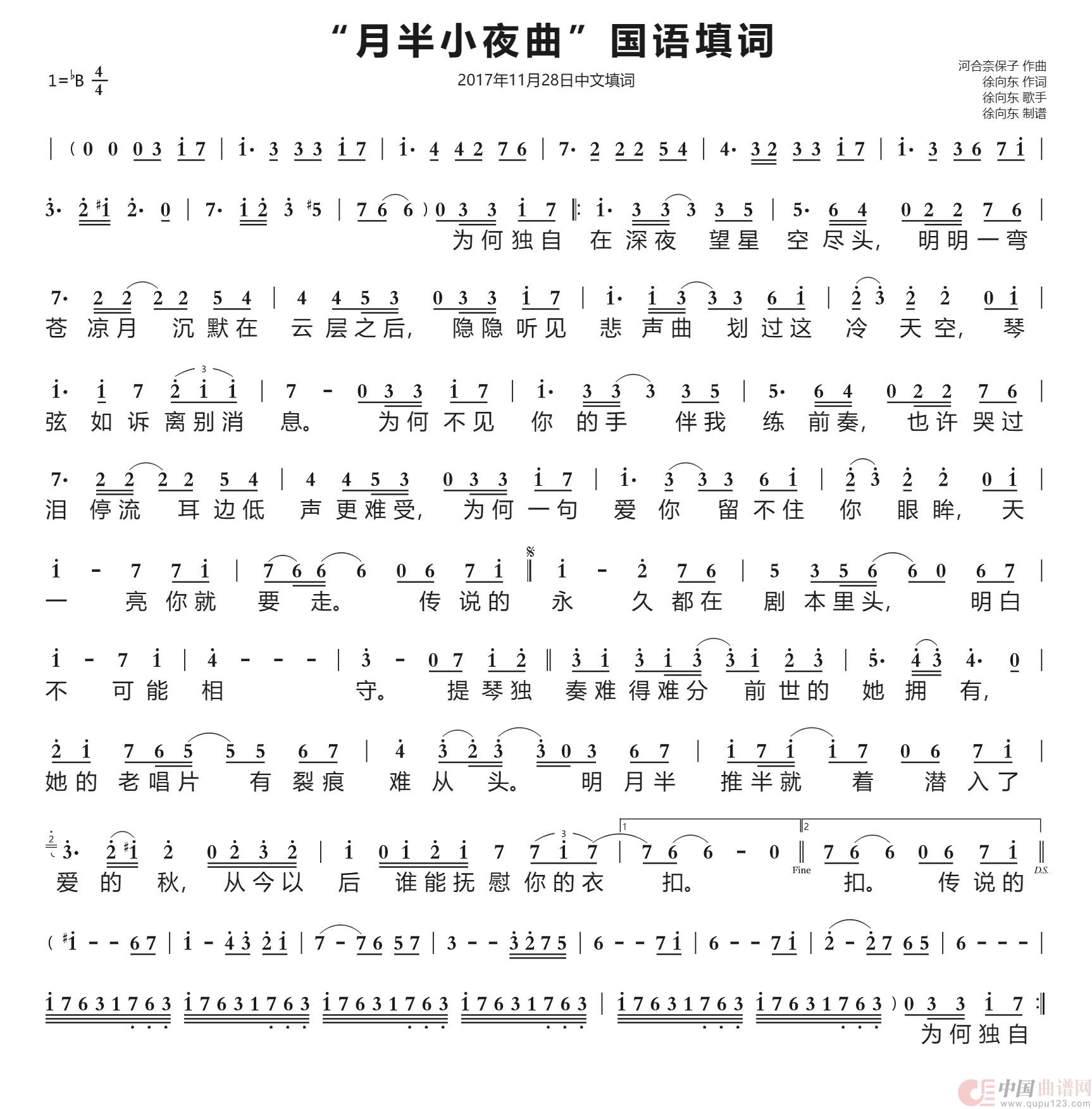 “月半小夜曲”国语填词(徐向东填词)(2017年11月28日填词)