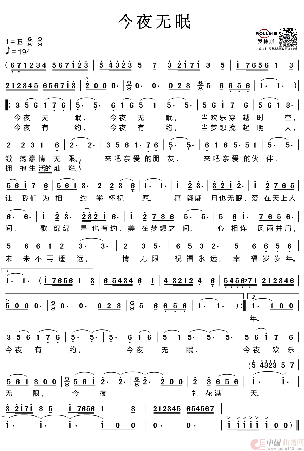 关于《今夜无眠》曲谱的评论