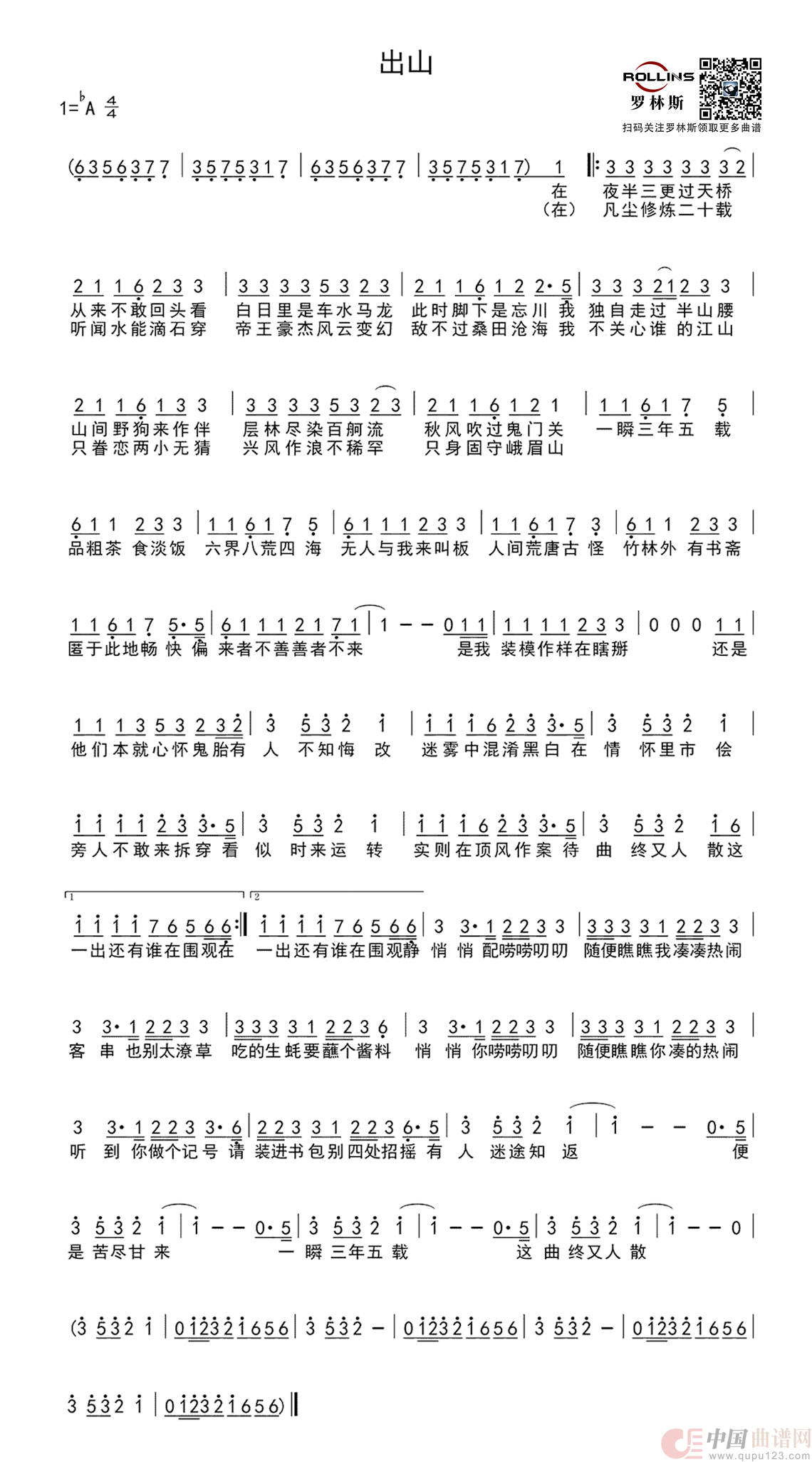 关于《出山》曲谱的评论