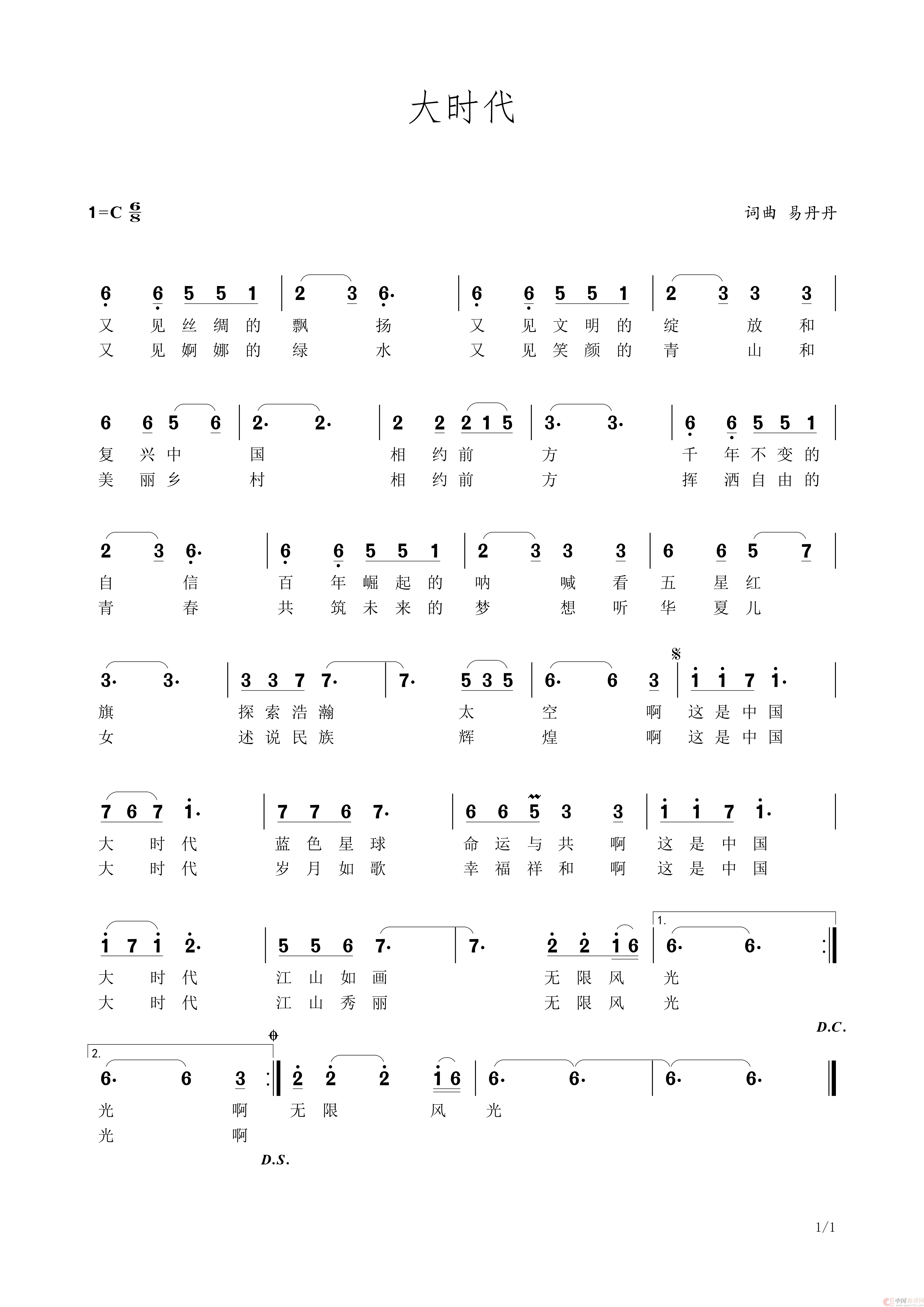 关于《大时代》曲谱的评论