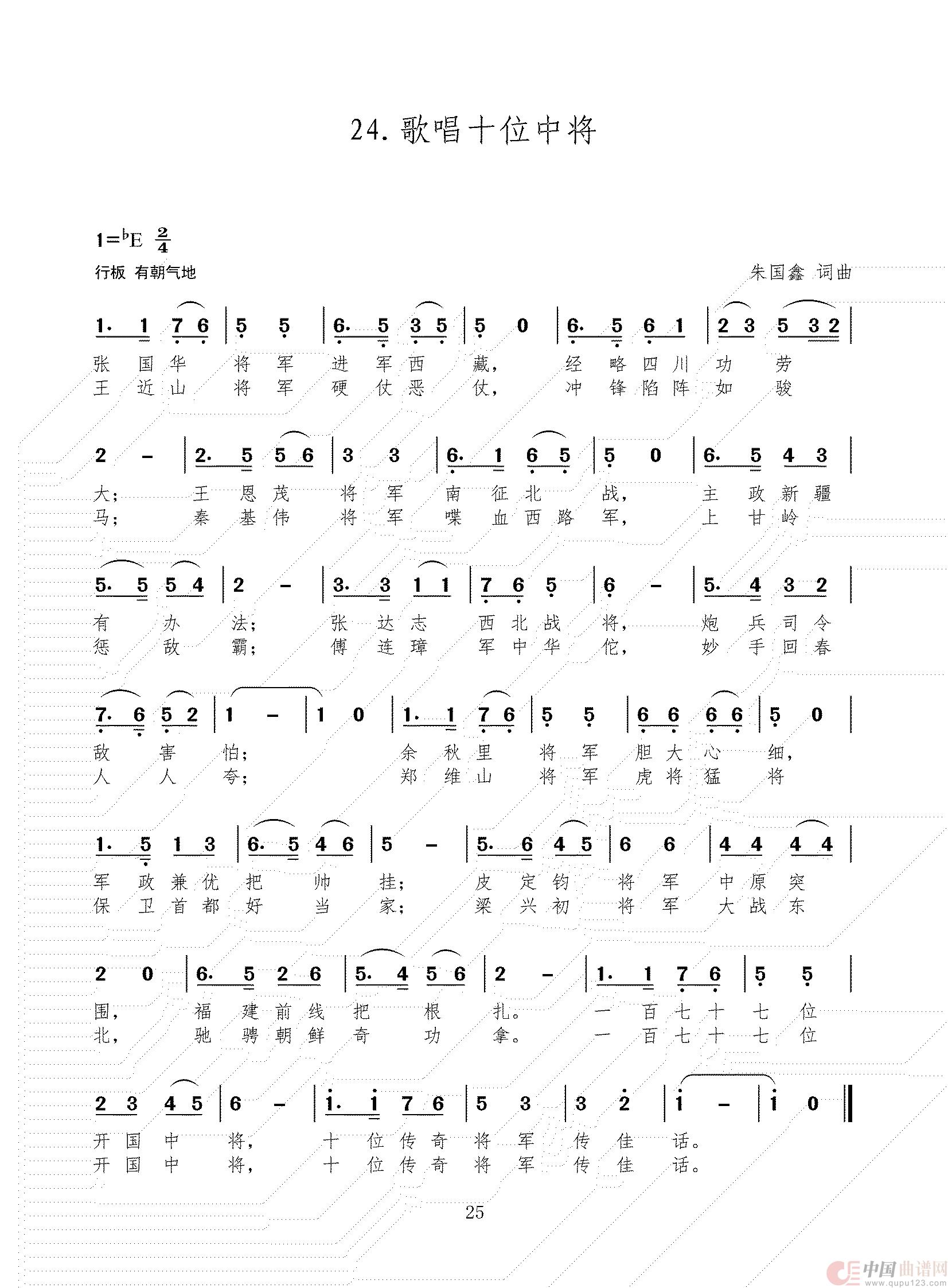 关于《歌唱是十位中将》曲谱的评论