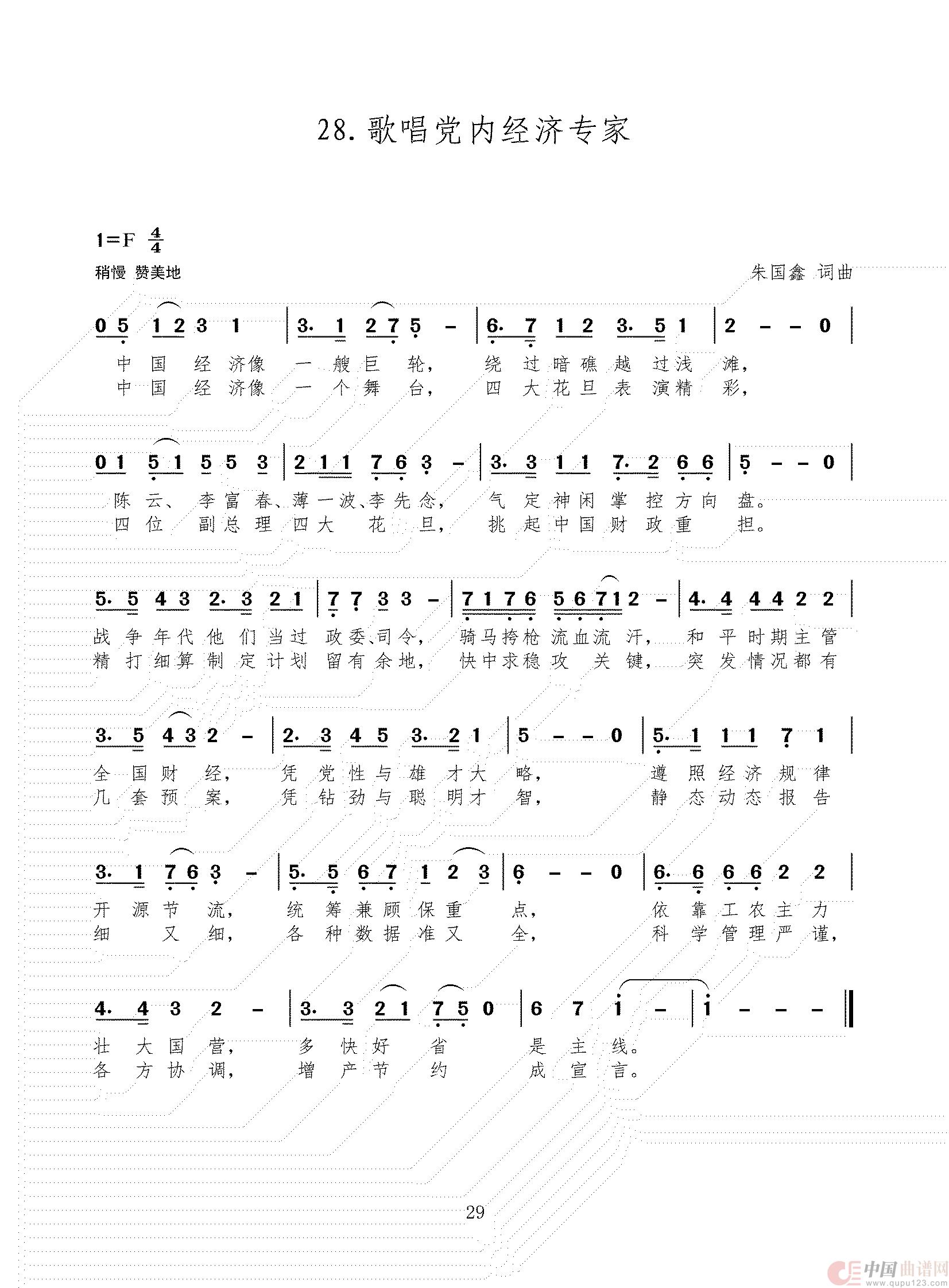 关于《歌唱党内经济专家》曲谱的评论